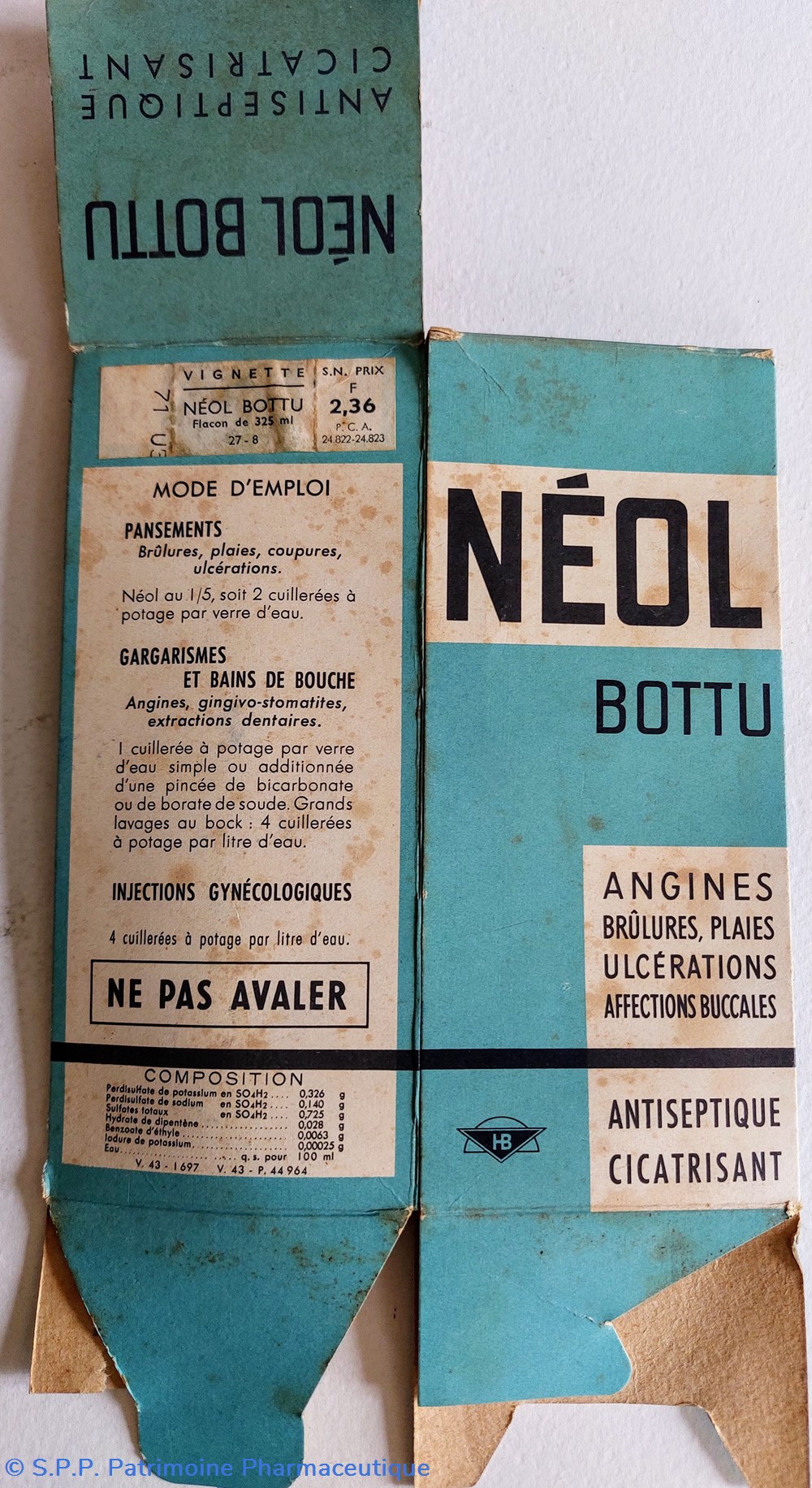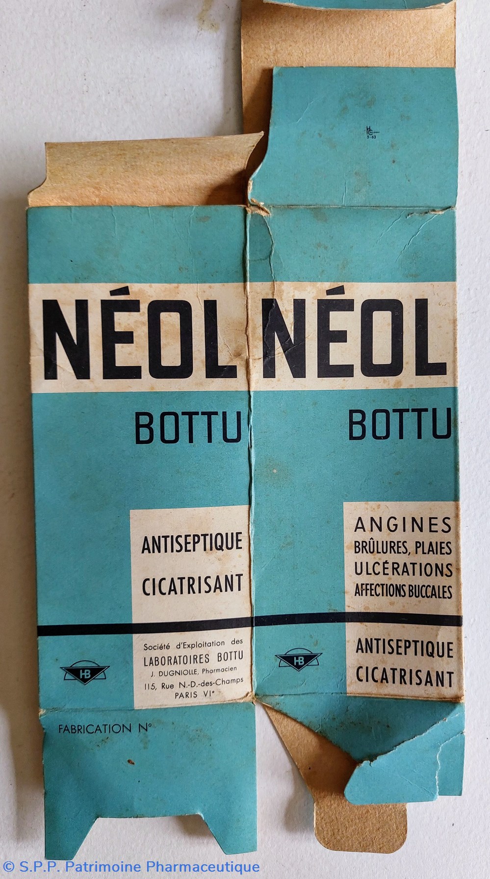 Emballage en carton hauteur 15.5 Base 7*7 cm ayant contenu un flacon de NEOL BOTTU de 325 cl