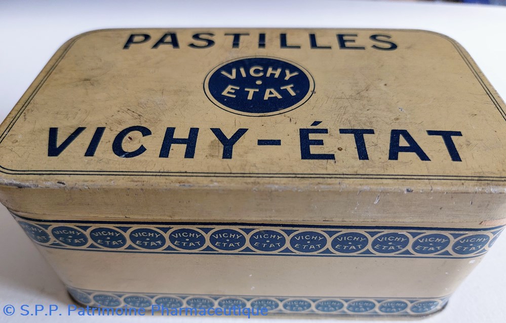 Boîte métallique vide ayant contenu des PASTILLES VICHY ETAT 14*8 *6,5 cm