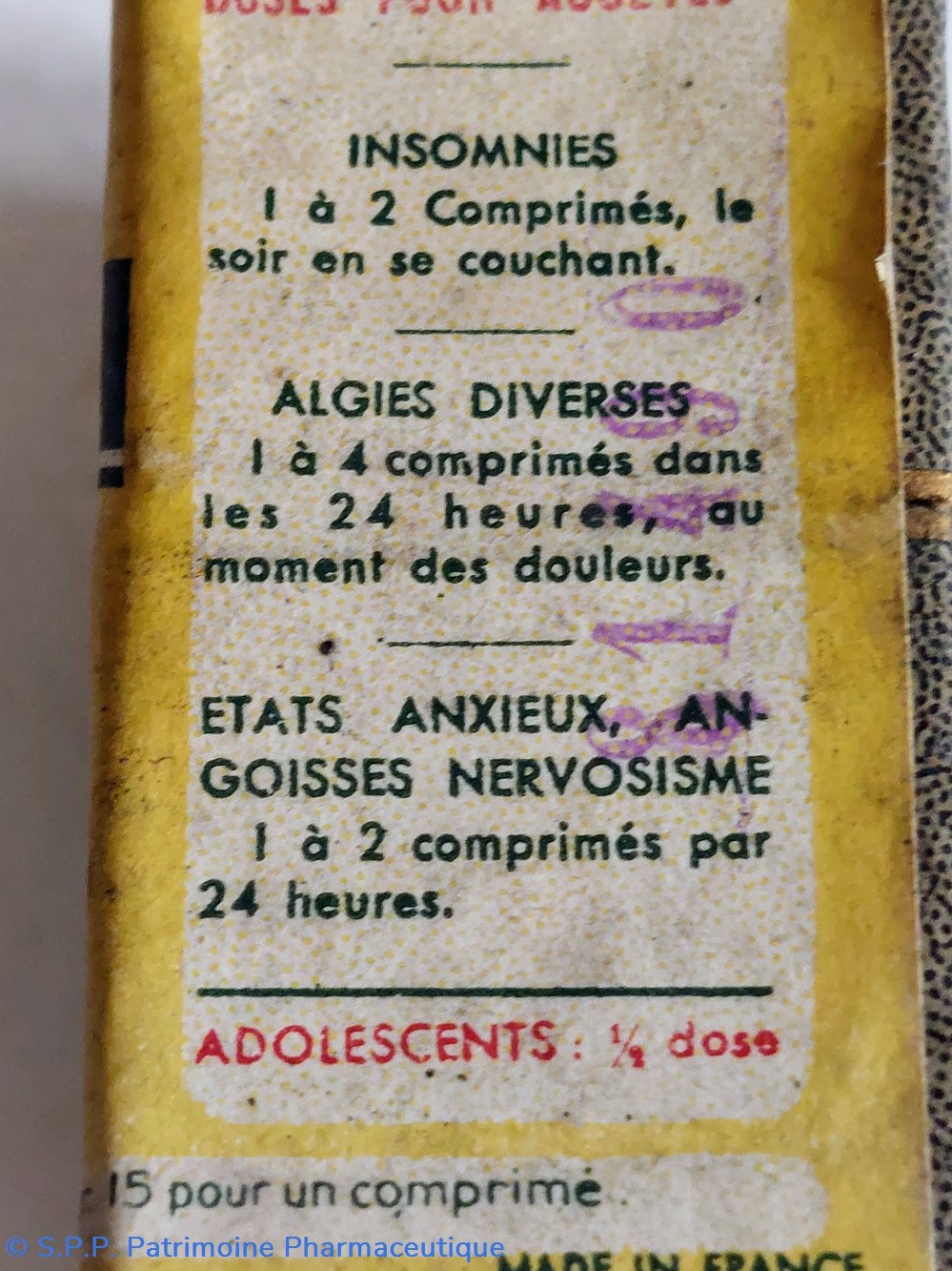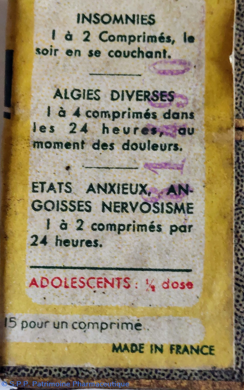 Sédatif général Hypnogène Analgésique en comprimés ( Existe aussi en suppositoires)
