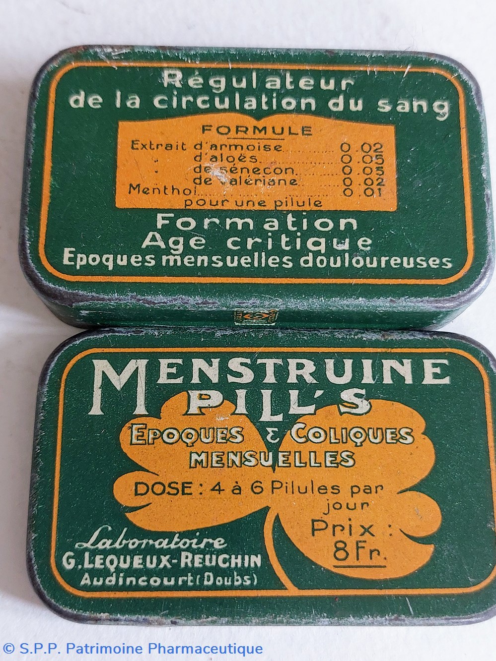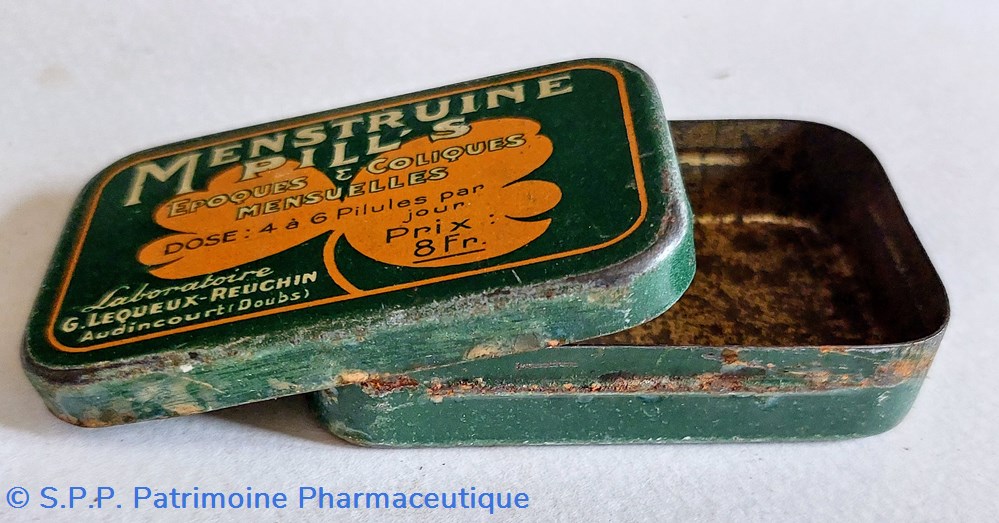 Petite boîte métallique 7*4*2 cm ayant contenu des pillules MENSTRUINE PILL'S