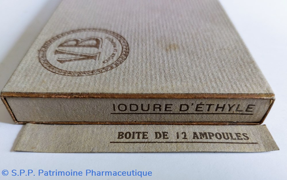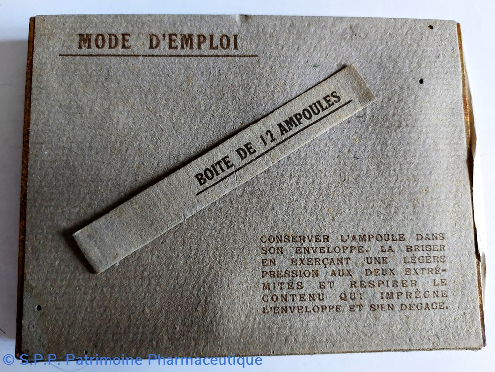 Coffret en carton 12*9*1,5 cm contenant 12 Ampoules de IODURE D'ÉTHYLE pour inhalations.