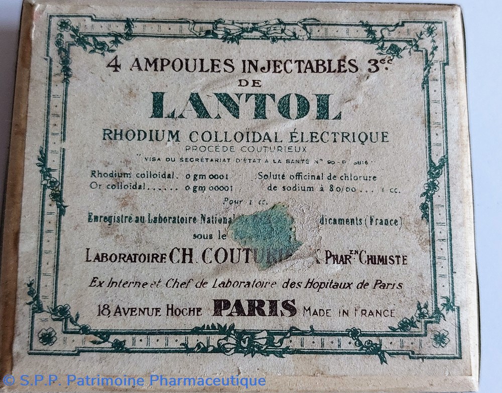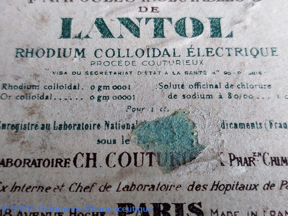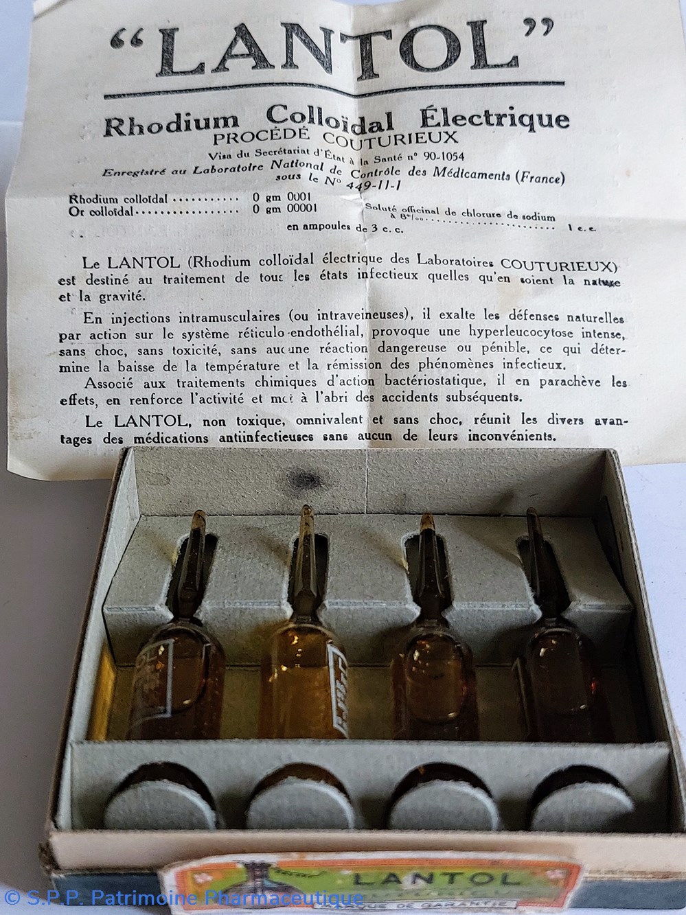 L' étiquette précise " RHODIUM COLLOÏDAL ÉLECTRIQUE" Procédé COUTURIEUX.