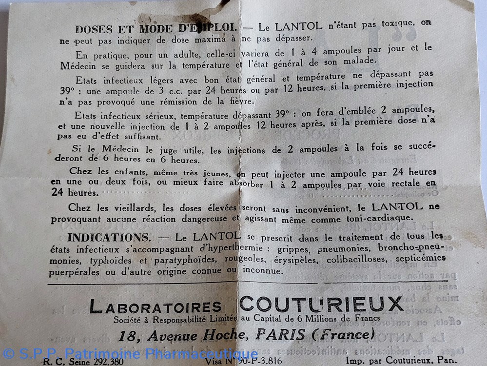 Laboratoires COUTURIEUX Paris Prix imposé 225 Fr.