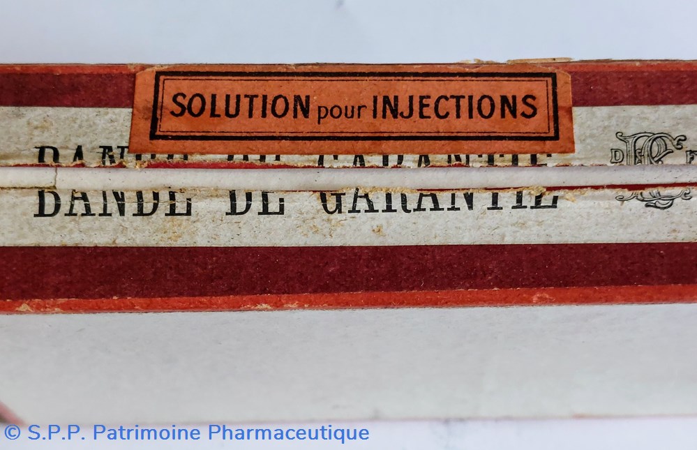 Boîte coffre en carton vide 12*6,5 *3 cm ayant contenu 6 AMPOULES TITRÉES ET et STÉRILISÉES pour injections hypodermiques.