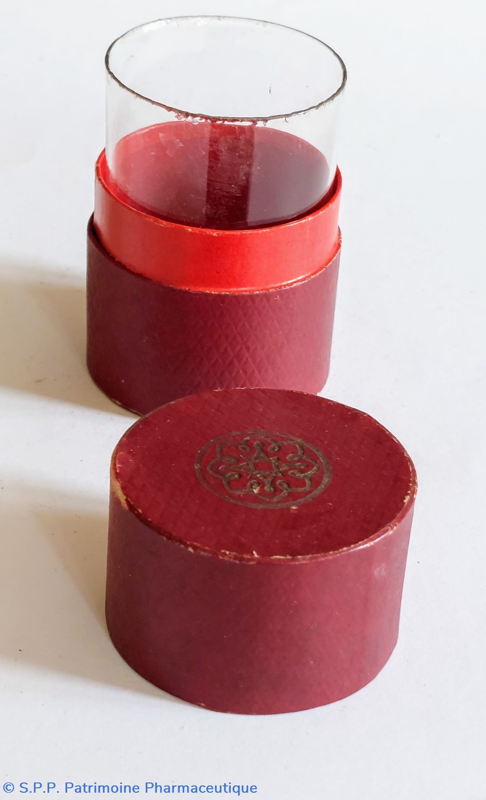 Coffret cylindrique en carton anonyme contenant un DOSEUR ( Hauteur 5,2 cm Diamètre 3,7 cm).