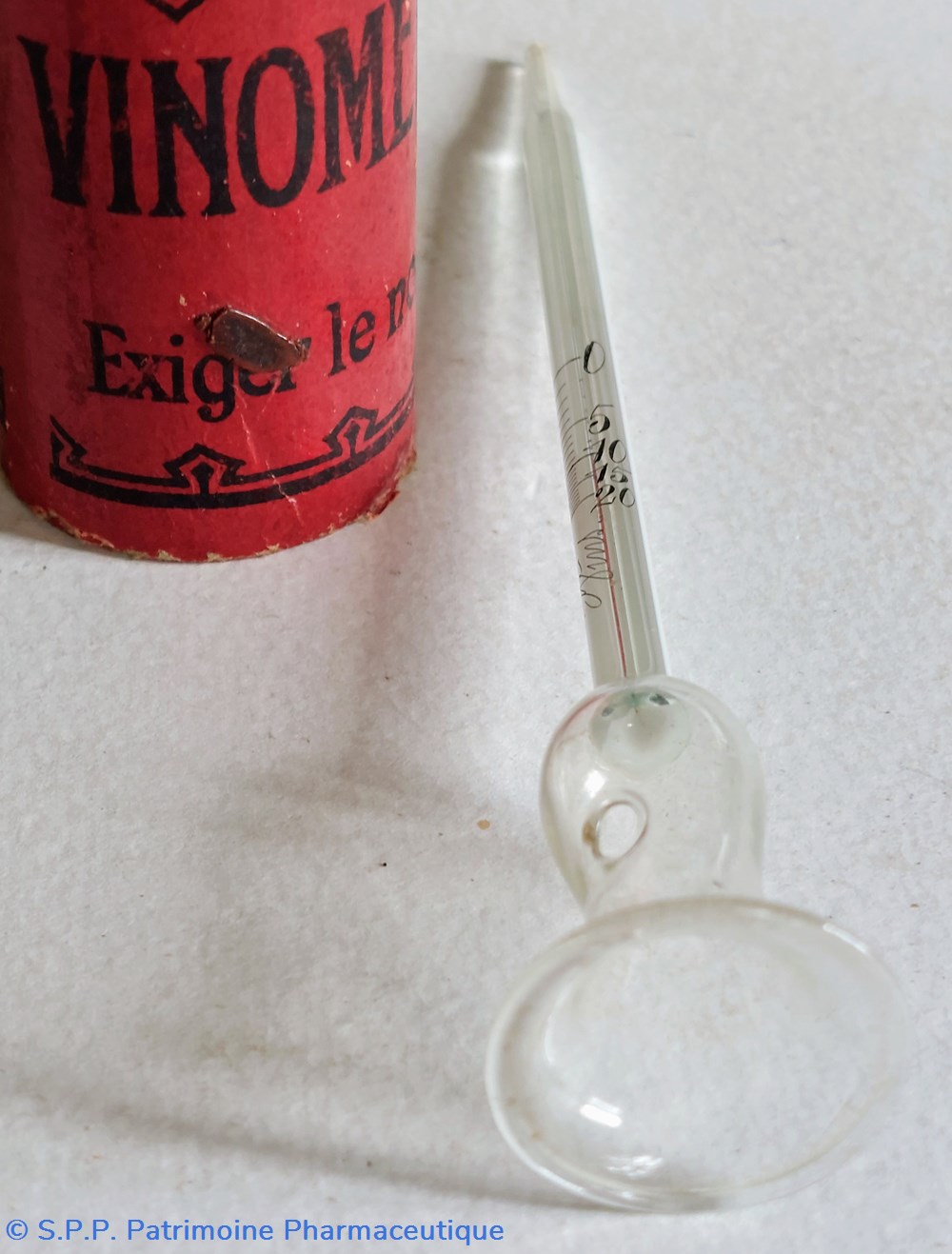 Un appareil en verre gradué long de 14,5 cm "donnant instantanément le degré d'alcool des vins.