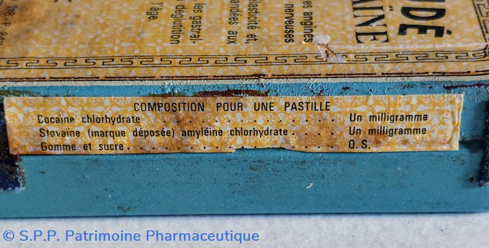 A base de Cocaine Chlorhydrate Stovaïne amyéline chlorhydrate, Gomme et sucre.