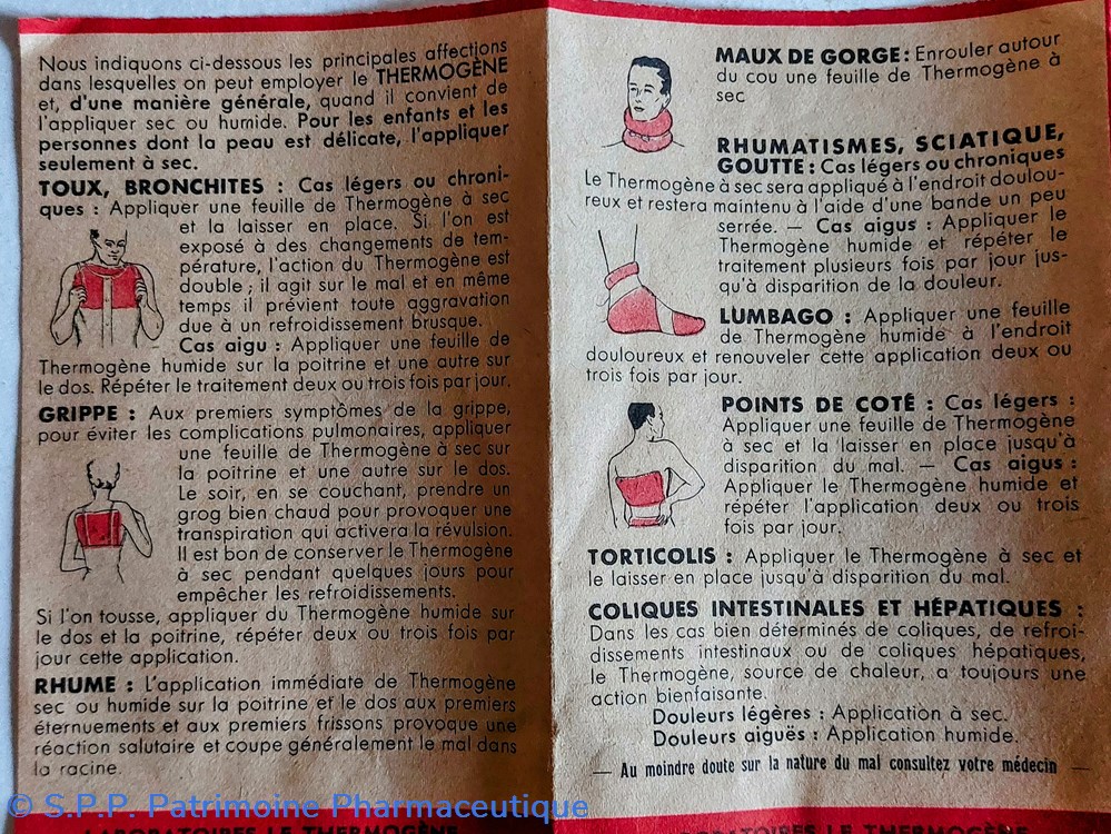 Pour les toux, bronchites, grippe, rhume, et maux de gorge, rhumatismes sciatique goutte, lumbago., points de côté, torticolis,, coliques intestinales et hépatiques.