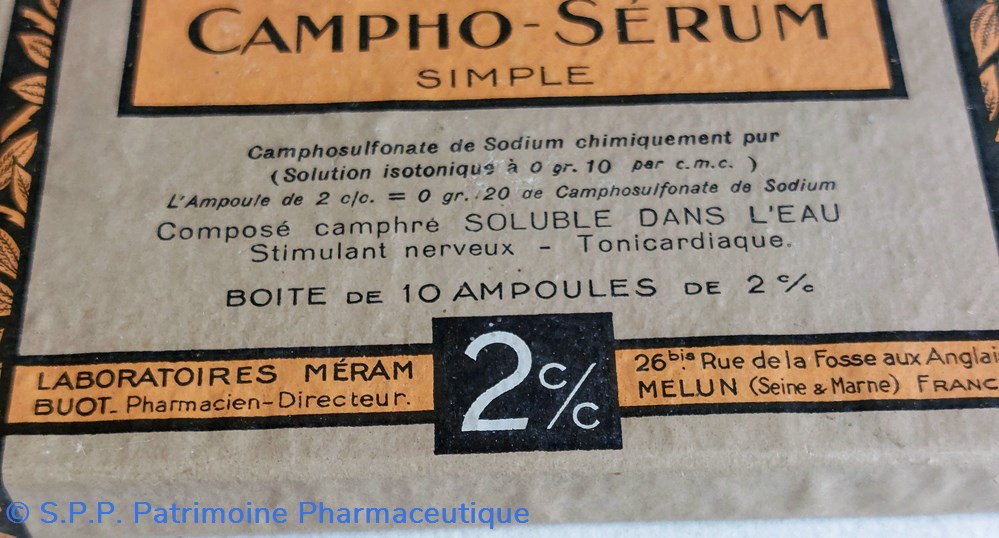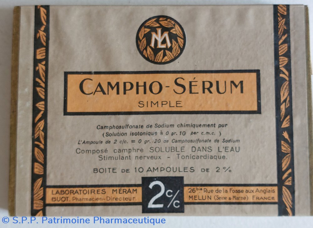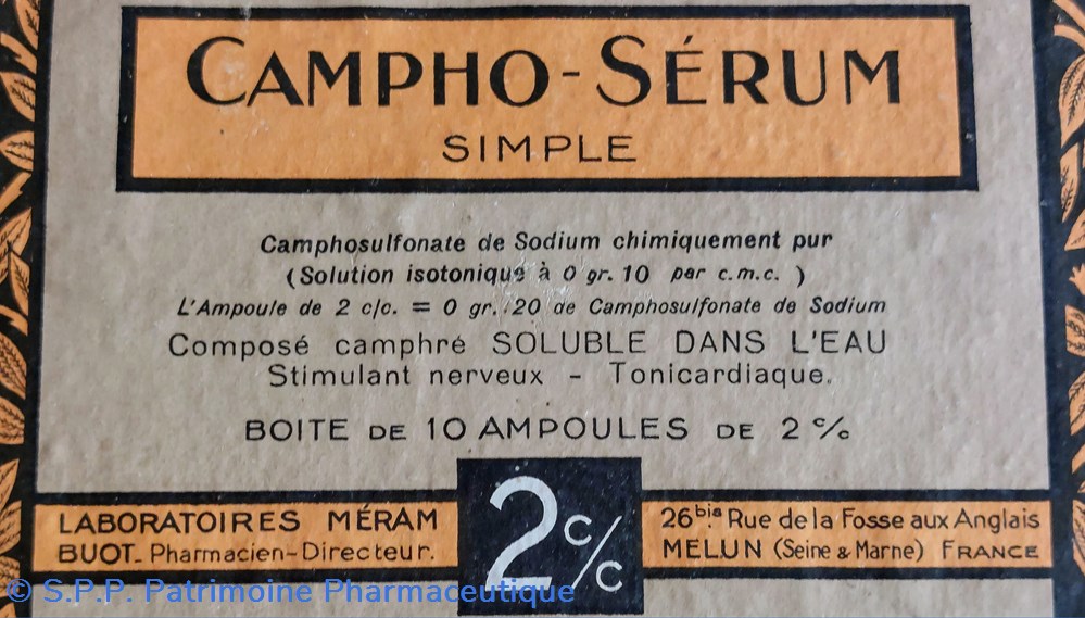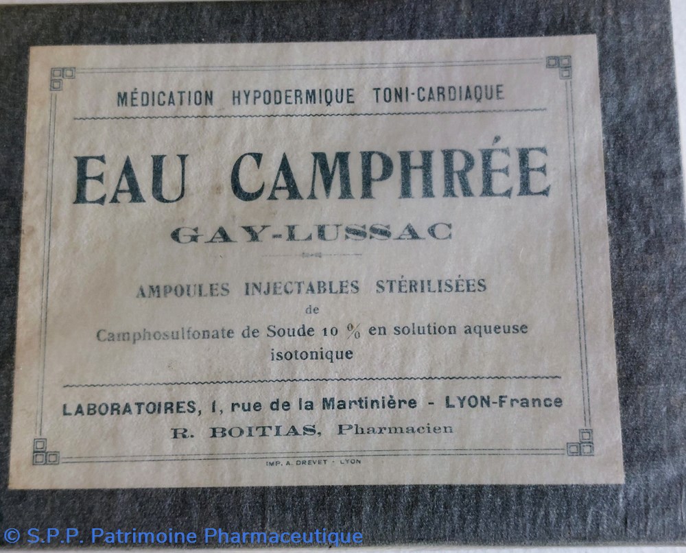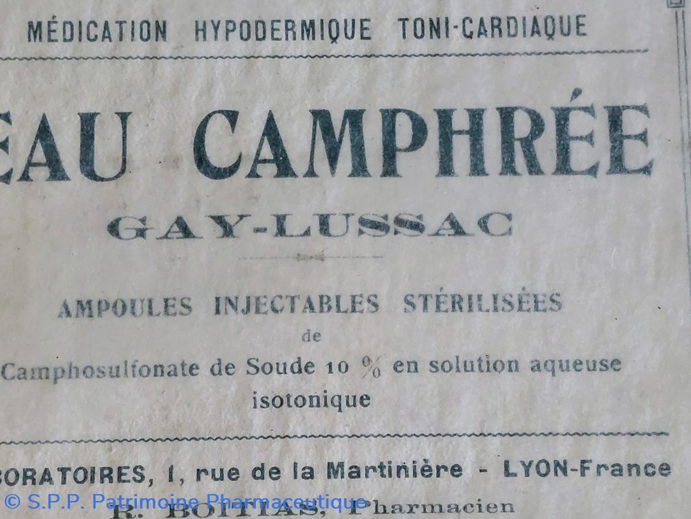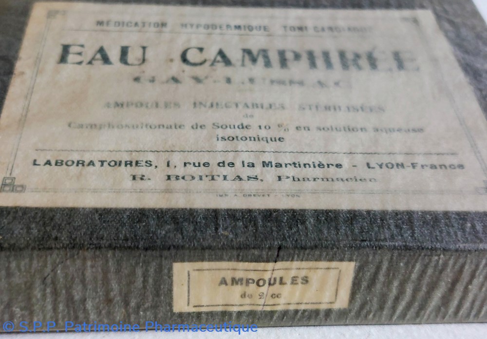 Médication hypodermique toni- cardiaque EAU CAMPHRÉE. Ampoules injectables stérilisées..