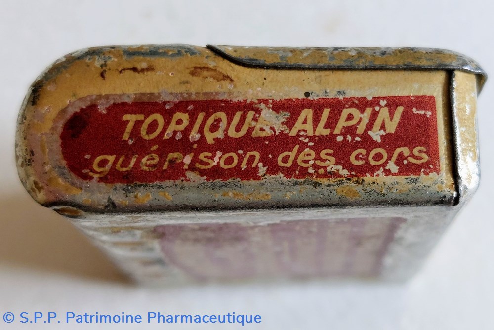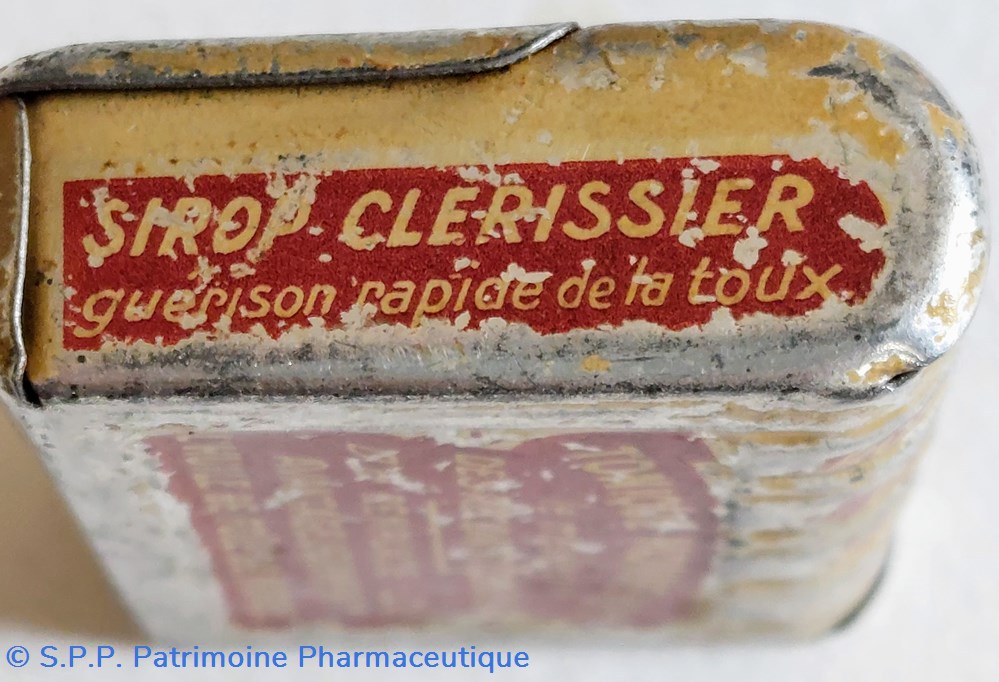 Sur les côtés :" Sirop CLERISSIER guérison rapide de la toux" et " Topique Alpin guérison des cors".
