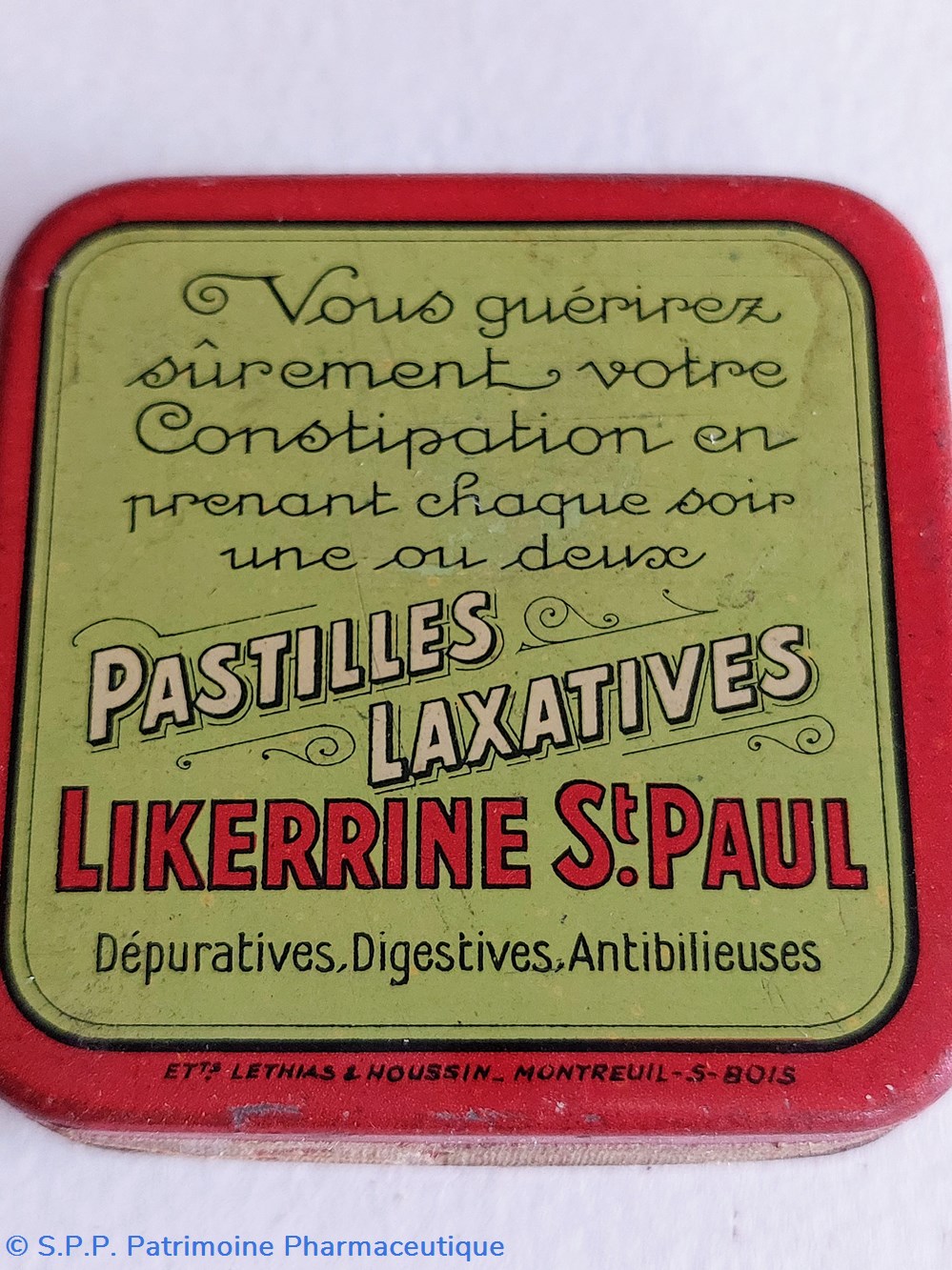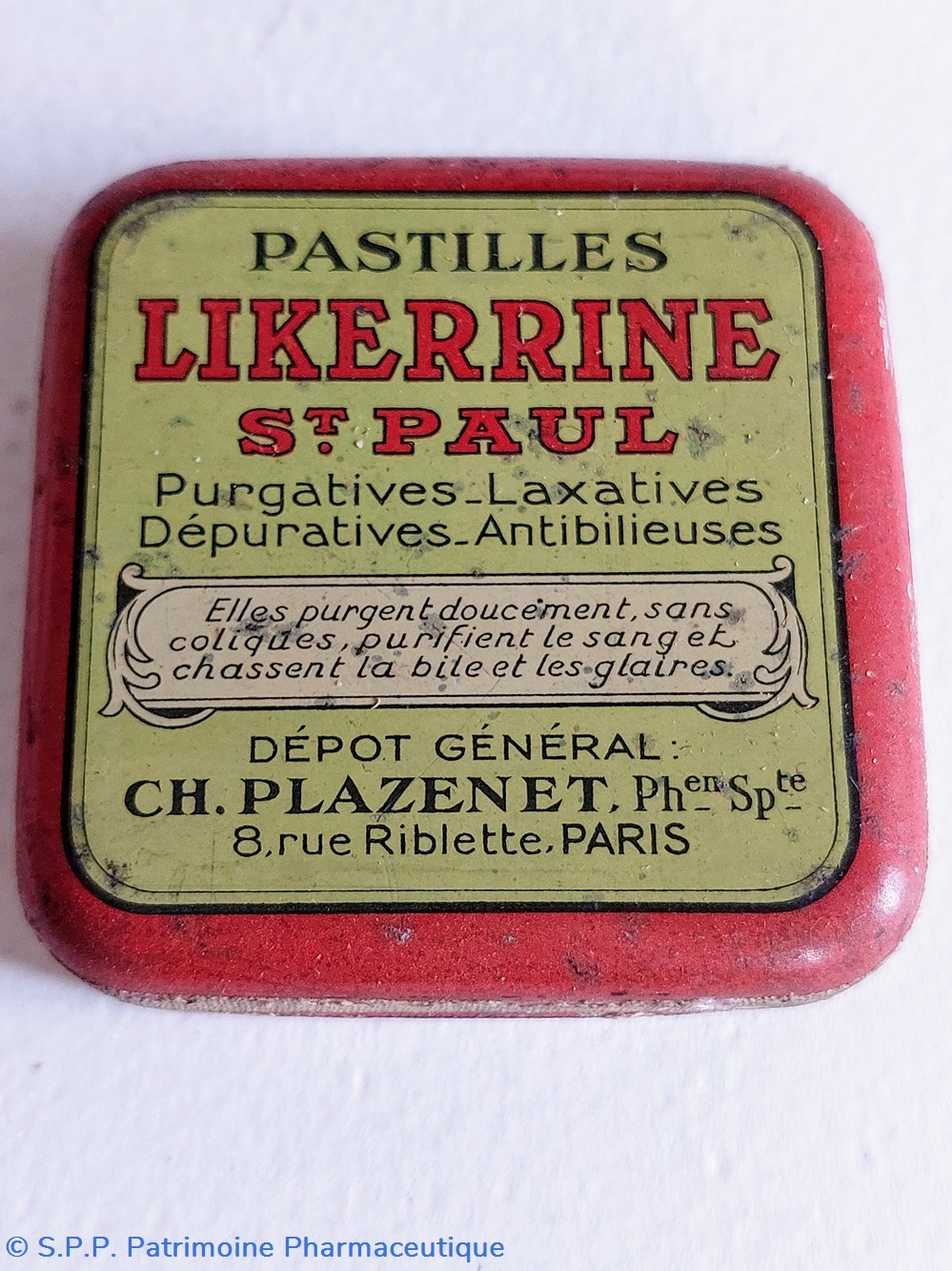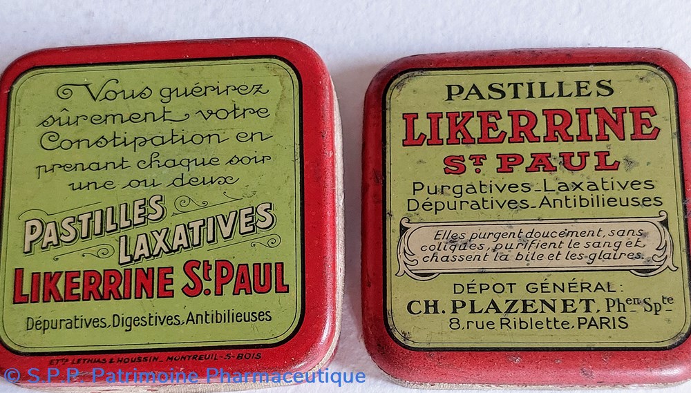 Boîte ayant contenu des pastilles LIKERRINE ST PAUL Purgatives laxatives depuratives et antibilieuses.