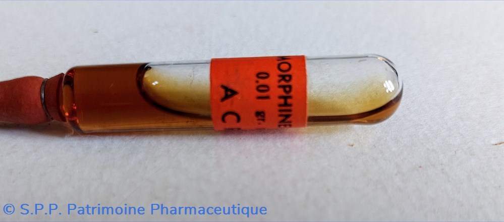 Ampoule contenant de la MORPHINE Chlorhydra. 0,01 gr pour 1 cc.