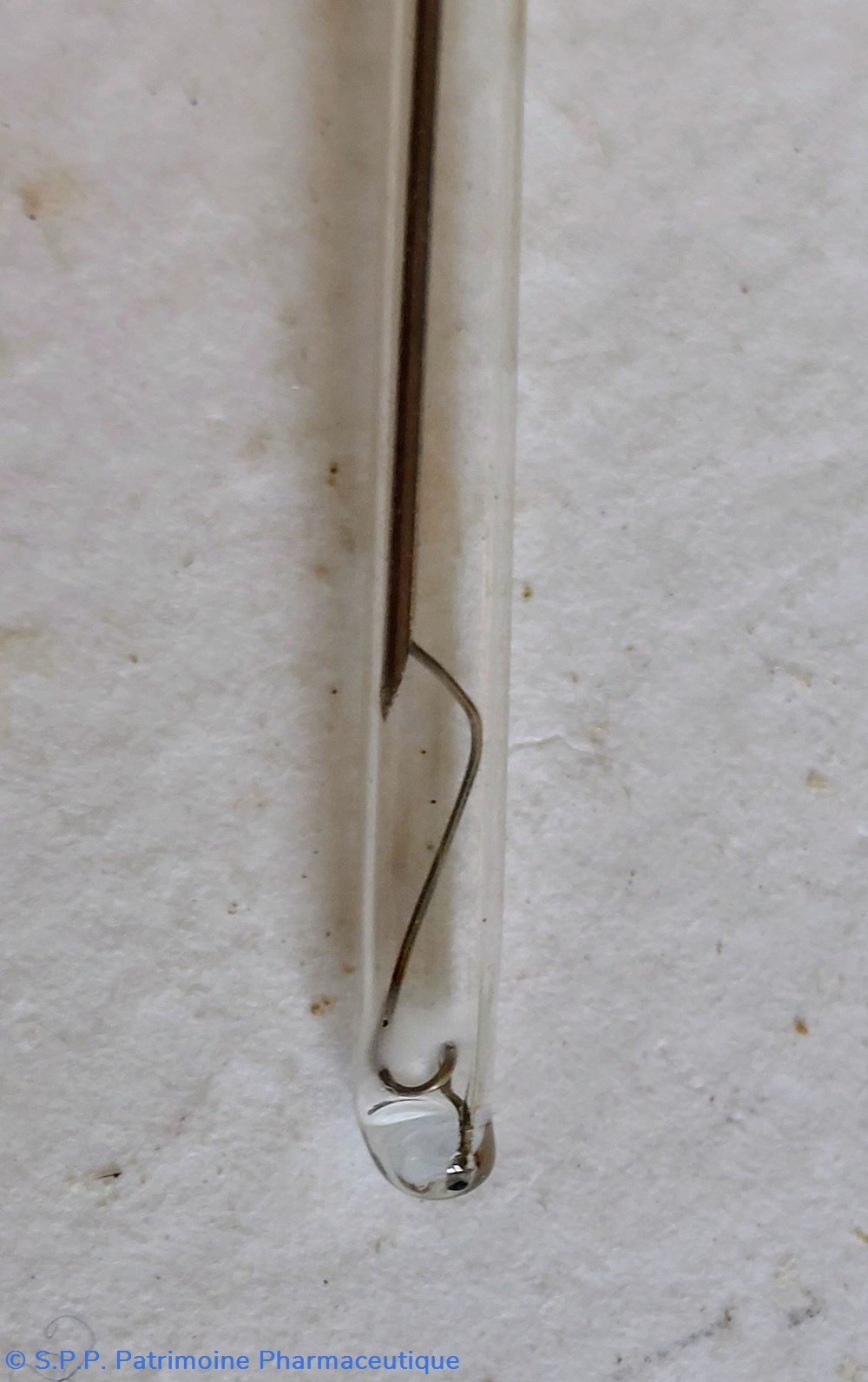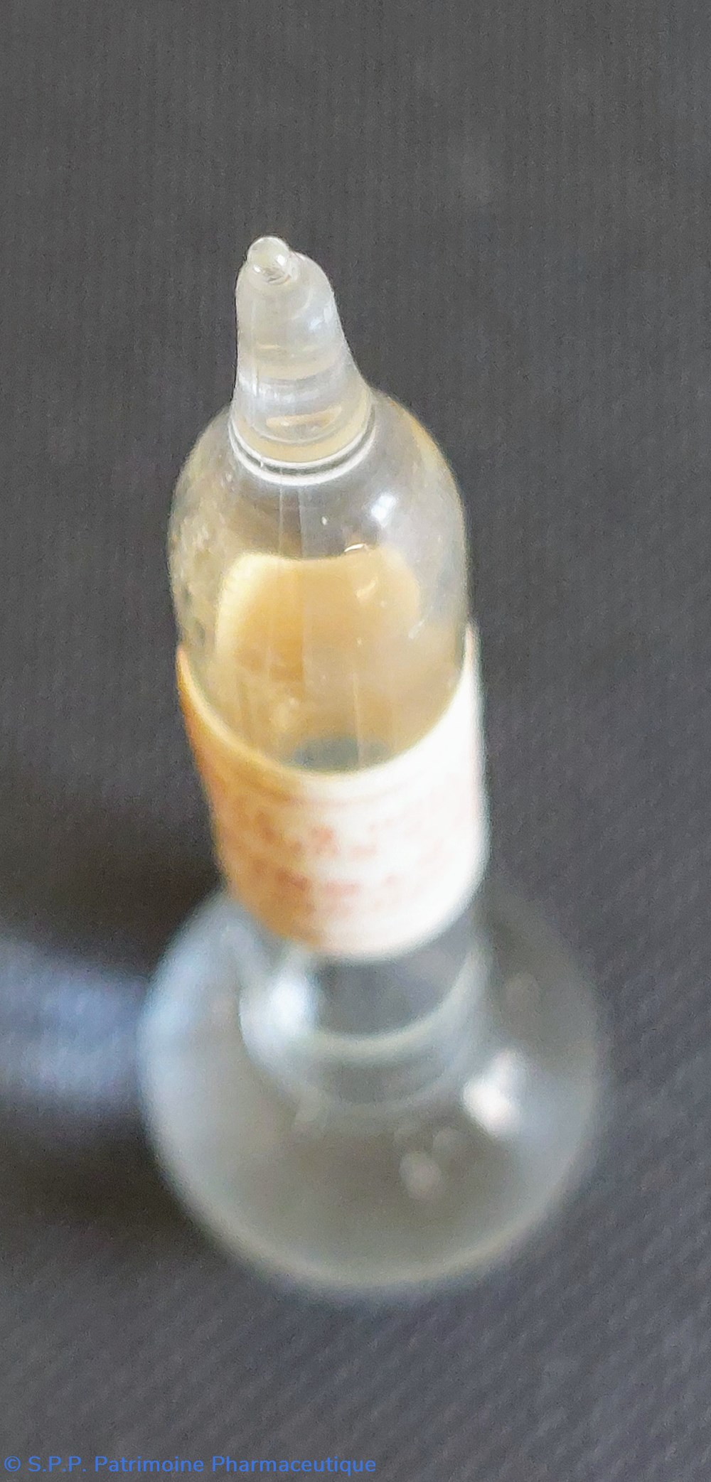 Ampoule conçue avec un réservoir arrondi d'environ 1,5 cm de diamètre.