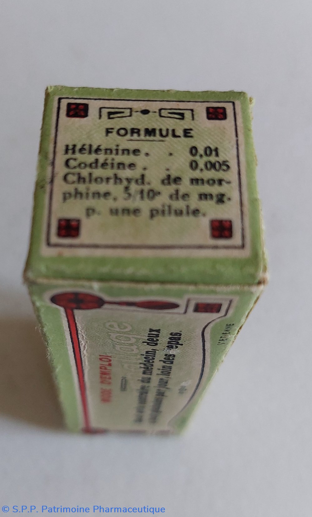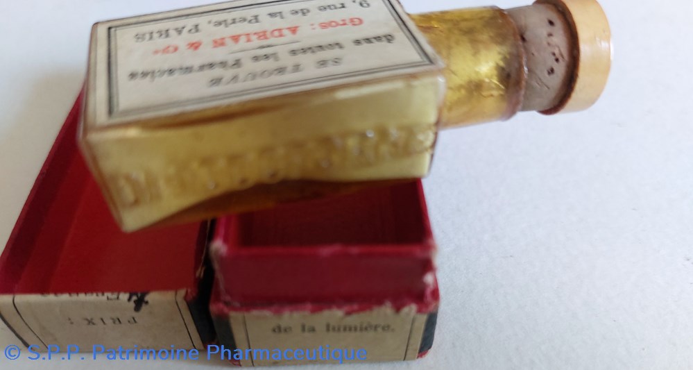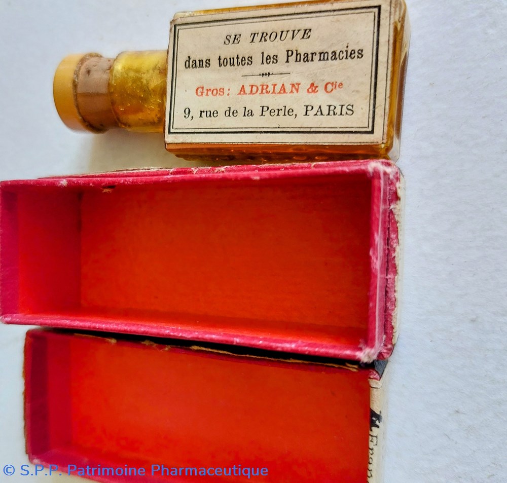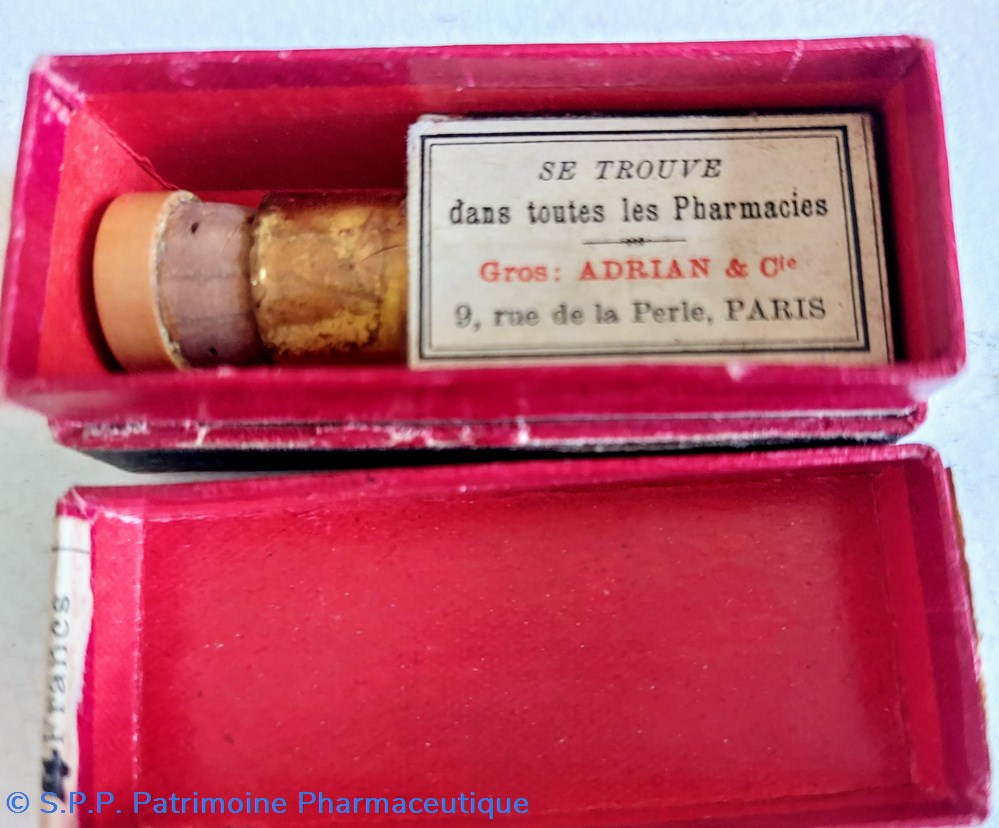 Ce coffret porte deux étiquettes latérales : Une indique " VETIVER" en gros caractères. Une autre manuscrite indique " Croquettes à la SANTONINE. Sur le couvercle on lit " 300"