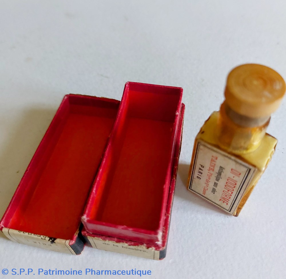 Flacon contenant de la poudre DI -IODOFORME TAINE antiseptique sans odeur. Flacon marqué sur les côtés.