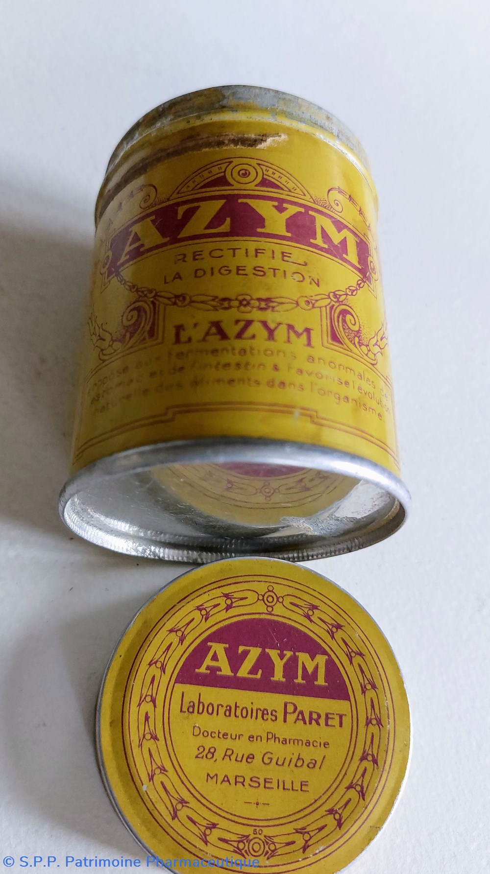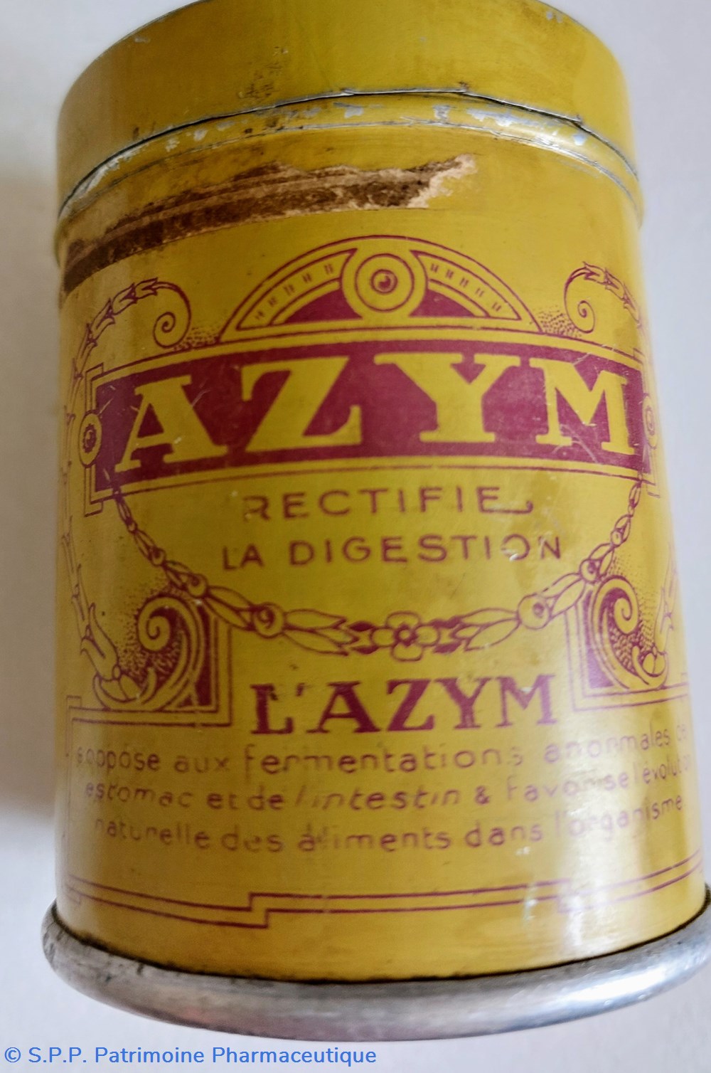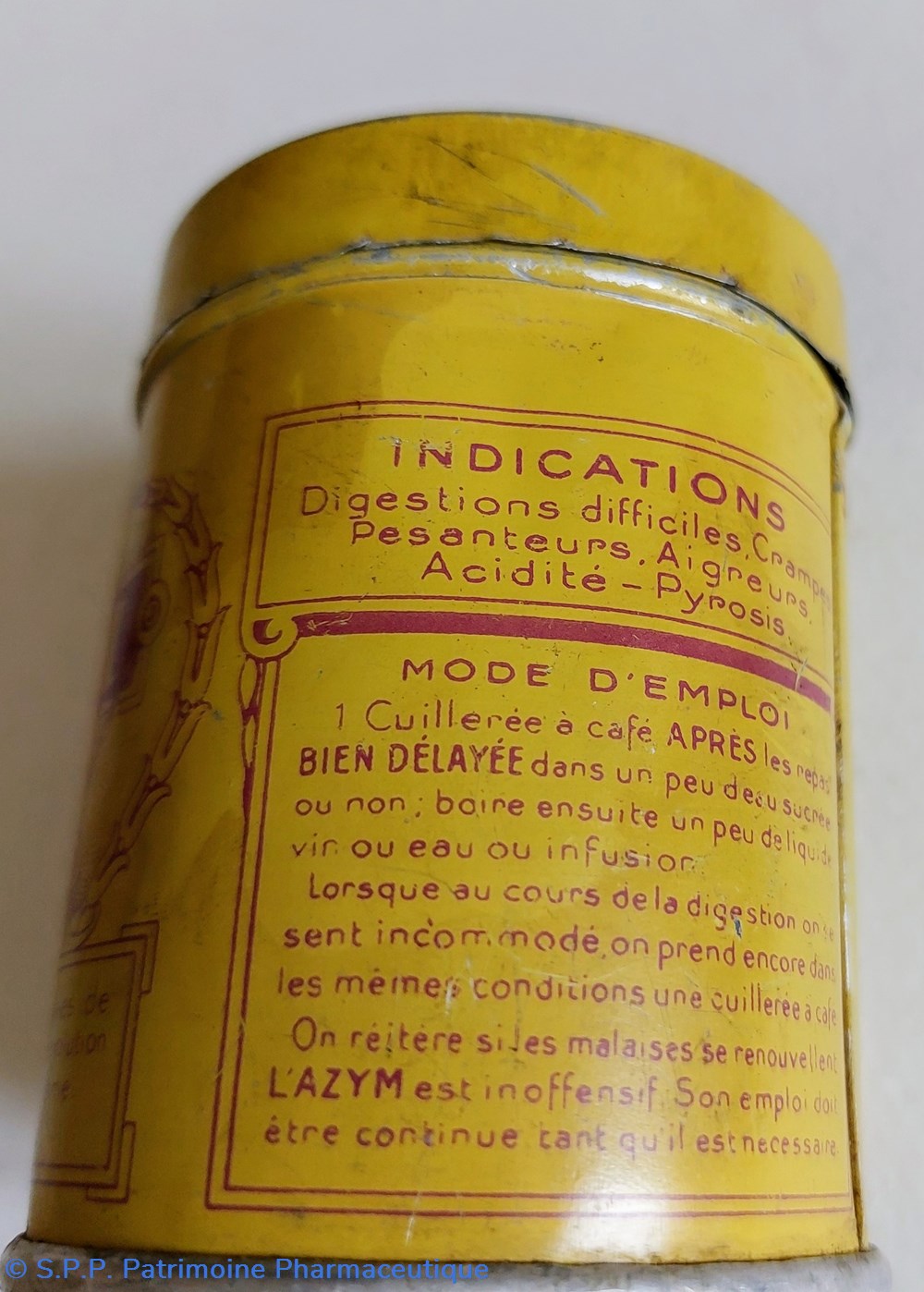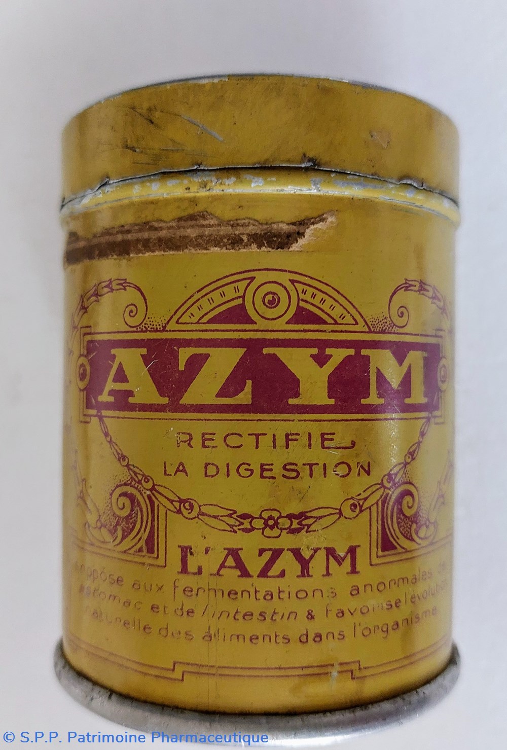 Boîte cylindrique hauteur 7,5 Diamètre 5,5 cm ayant contenu de L'AZYM.