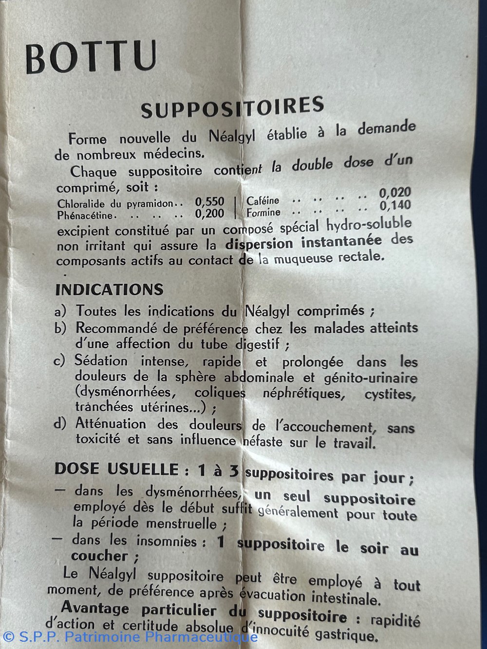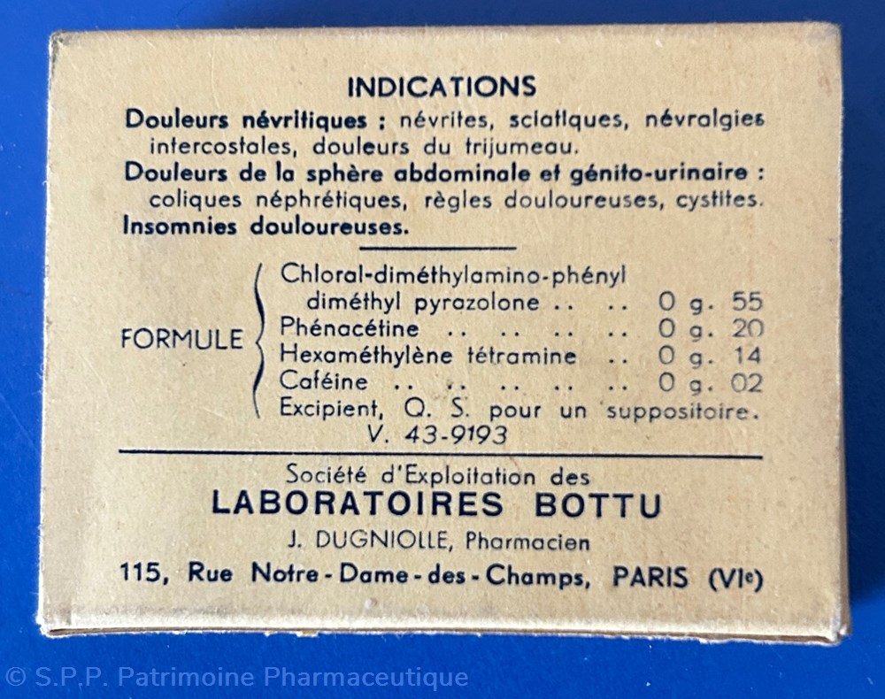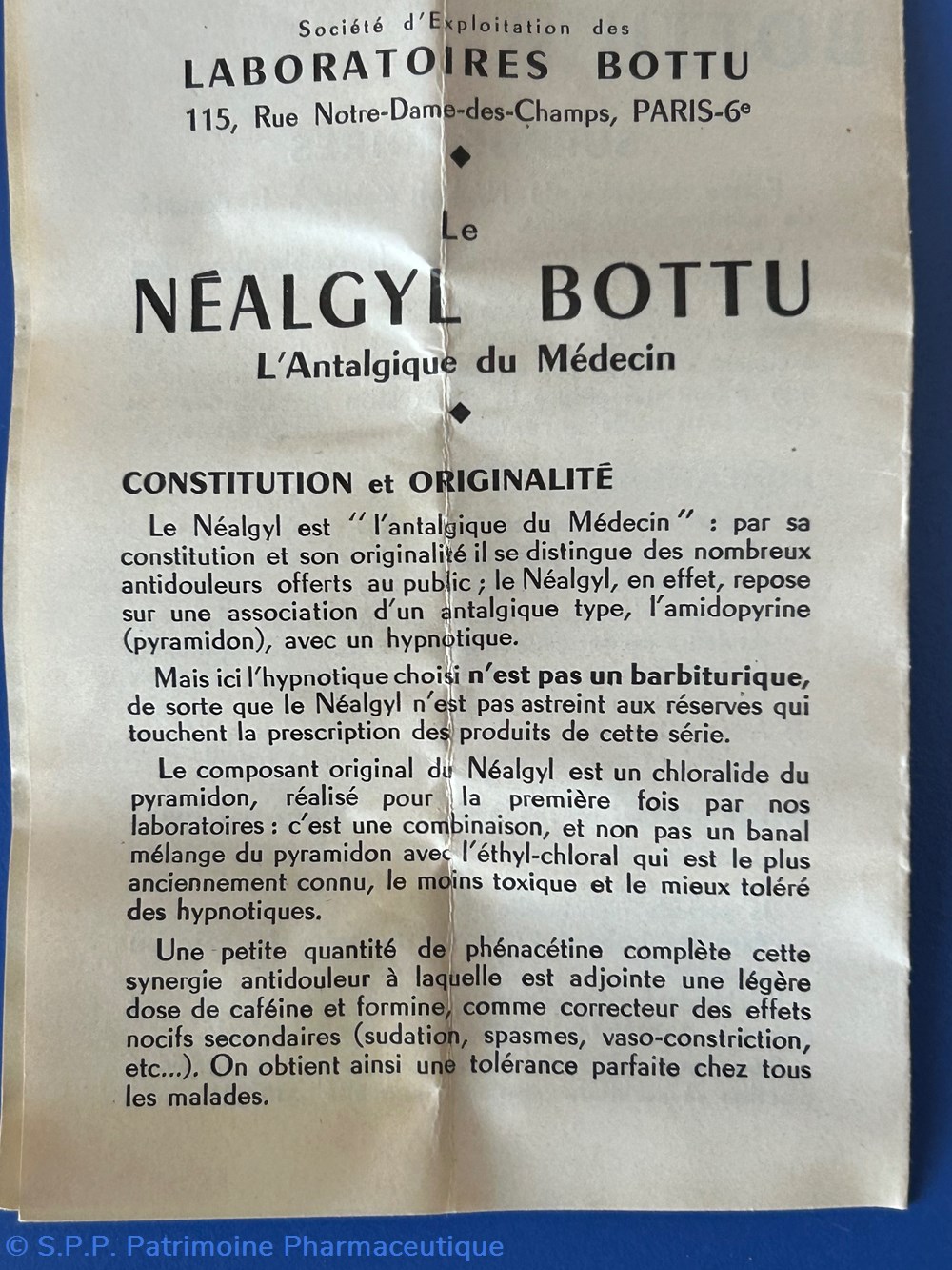 Sédatif de la douleur Laboratoires Bottu J. Dugniolle 115 rue Notre Dame des Champs Paris VIème