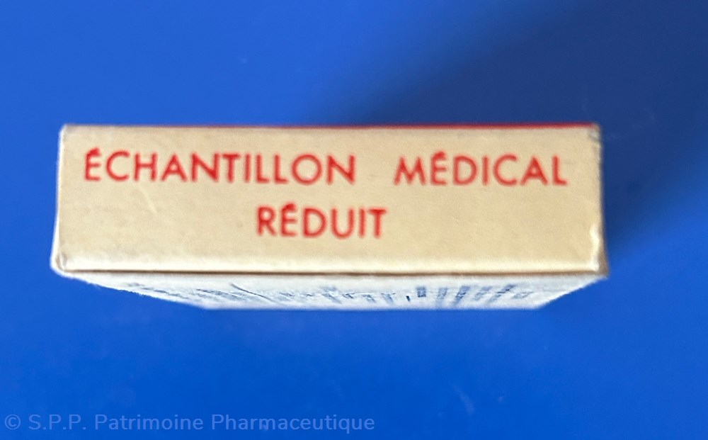 Petite boîte en carton de forme parallélépipèdique 6.5 x 5x 1.5 cm. Cette boîte contient une plaquette de 4 suppositoires sous rhodoide 3 notices sont jointes.