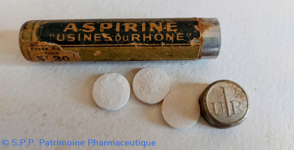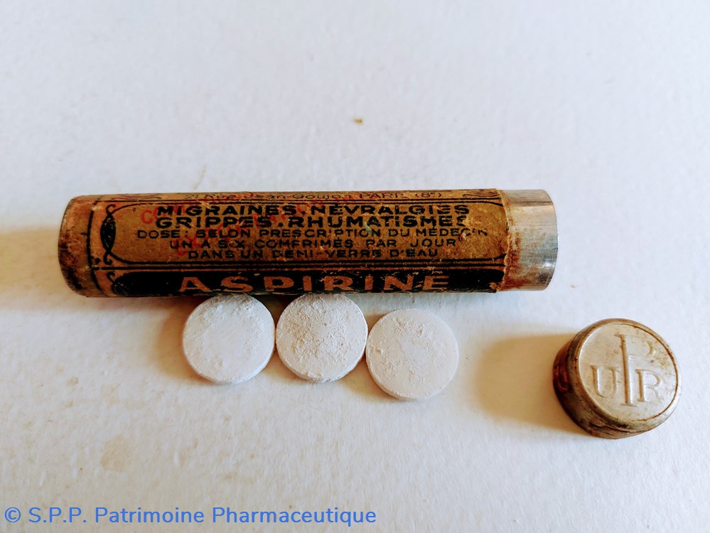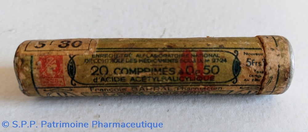 Comprimés à la main 0,50 d'acide acetylsalsicylique pour migraines névralgies grippe rhumatismes.