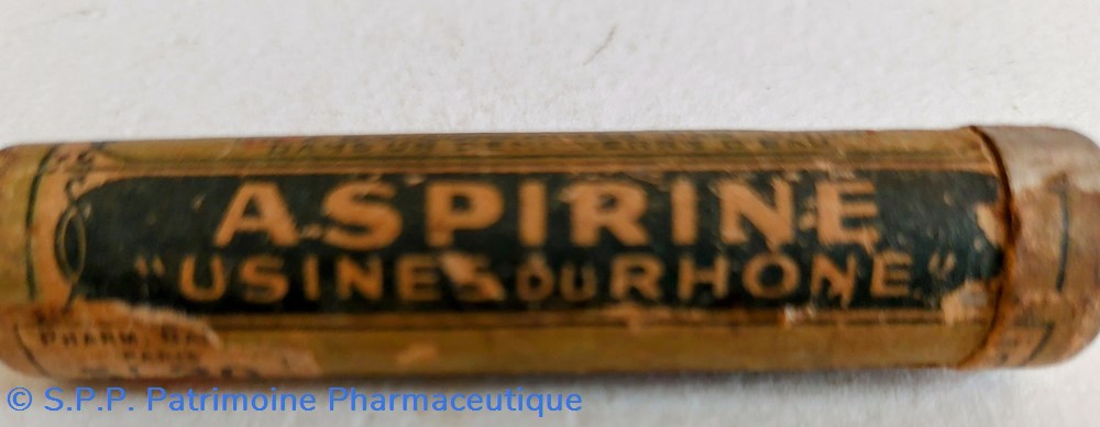 Vieux tube D'ASPIRINE contenant quelques comprimés (7 cm Diamètre 1,5 cm) 1665-1714 mauvais état