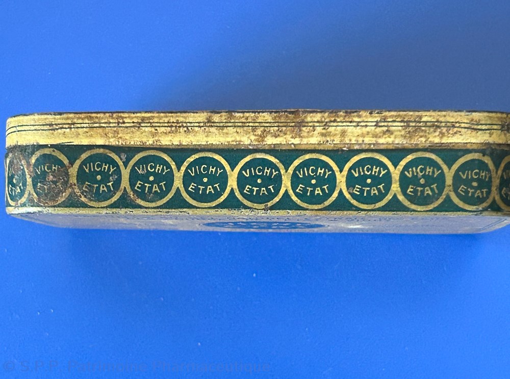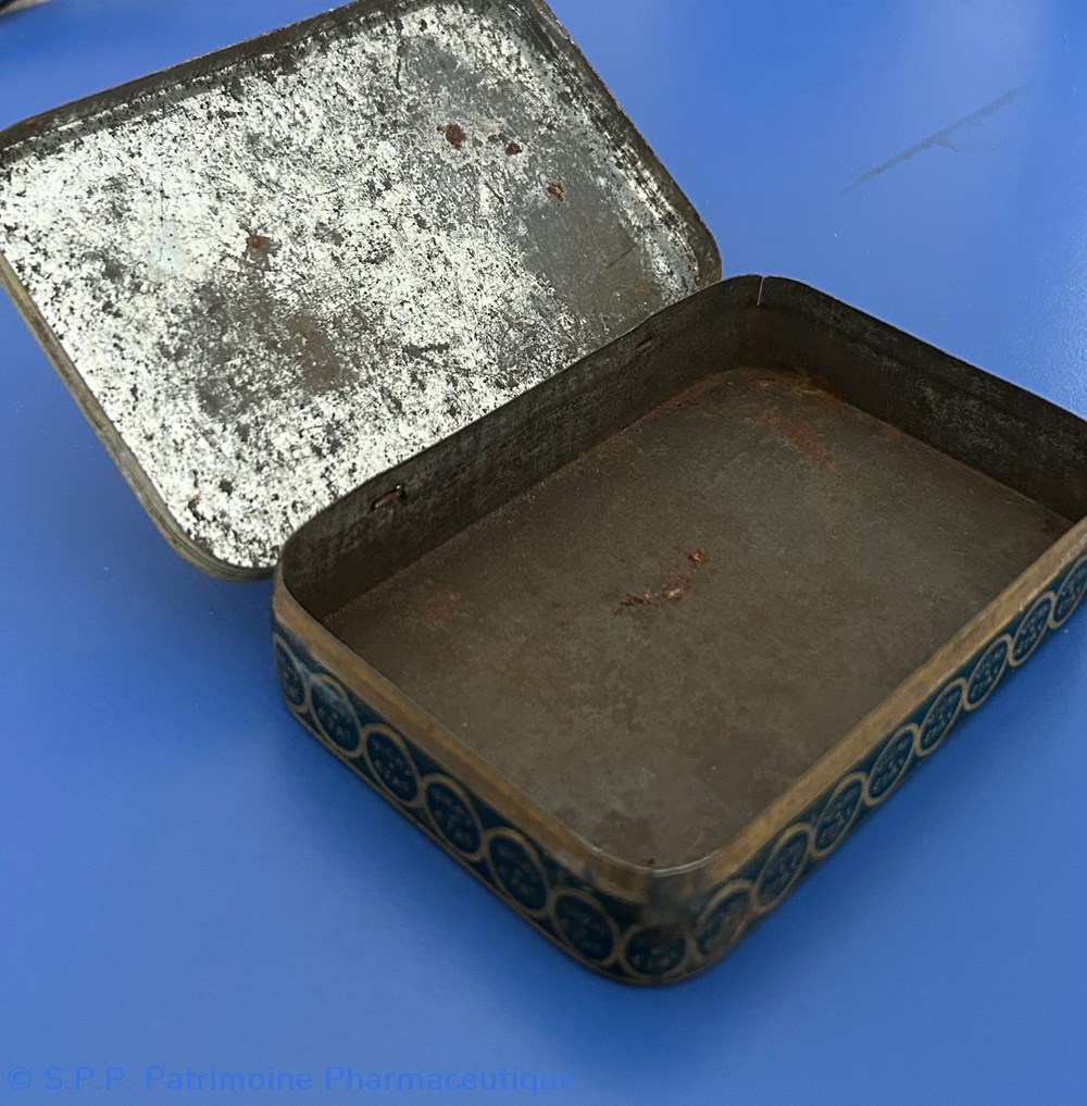 Boîte métallique 14,5*10,5 *3 cm ayant contenu des Médicaments GLUTINISÉS à la exipients résineux.