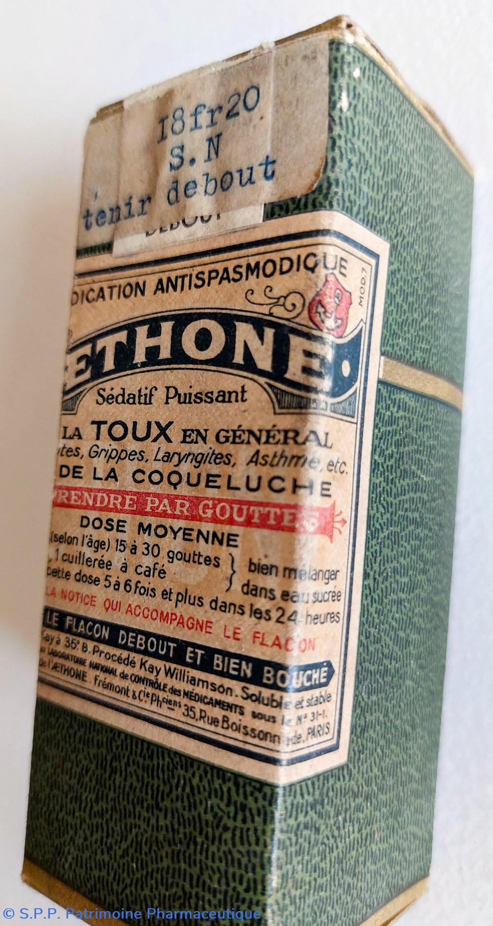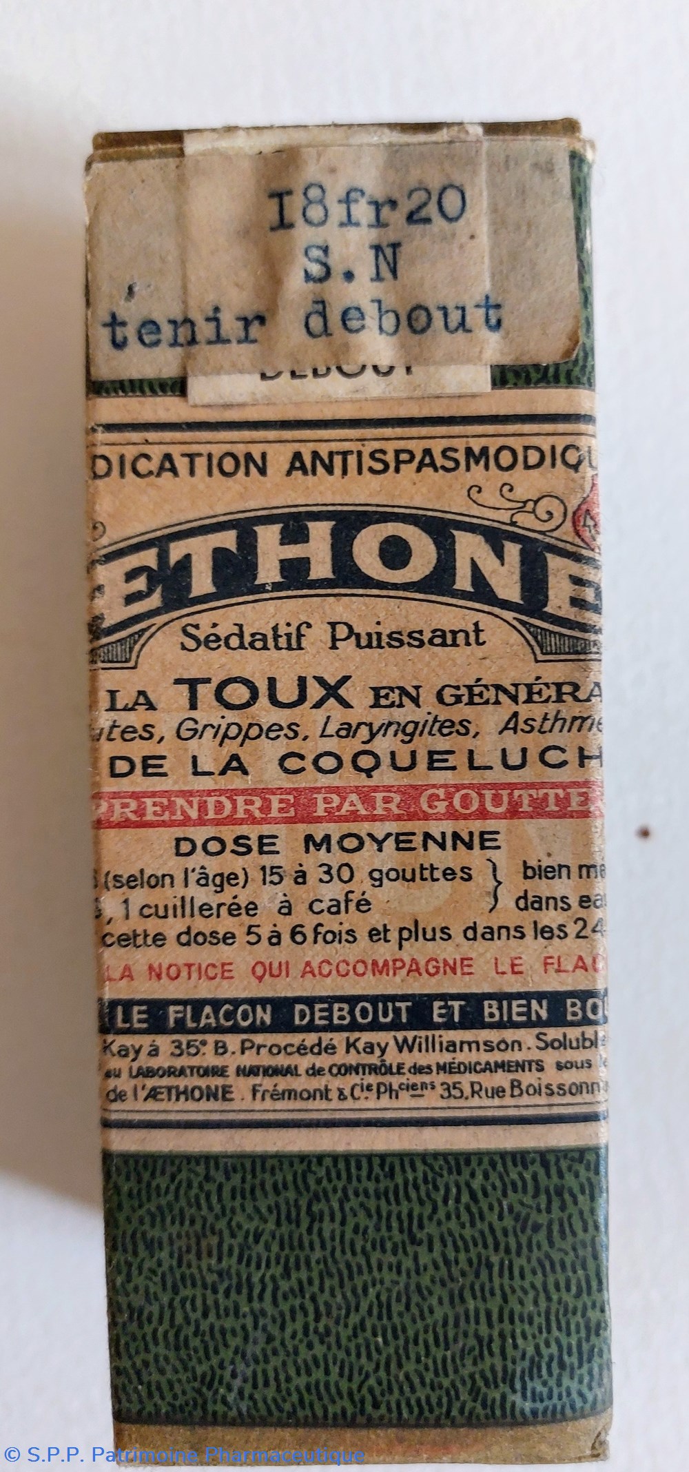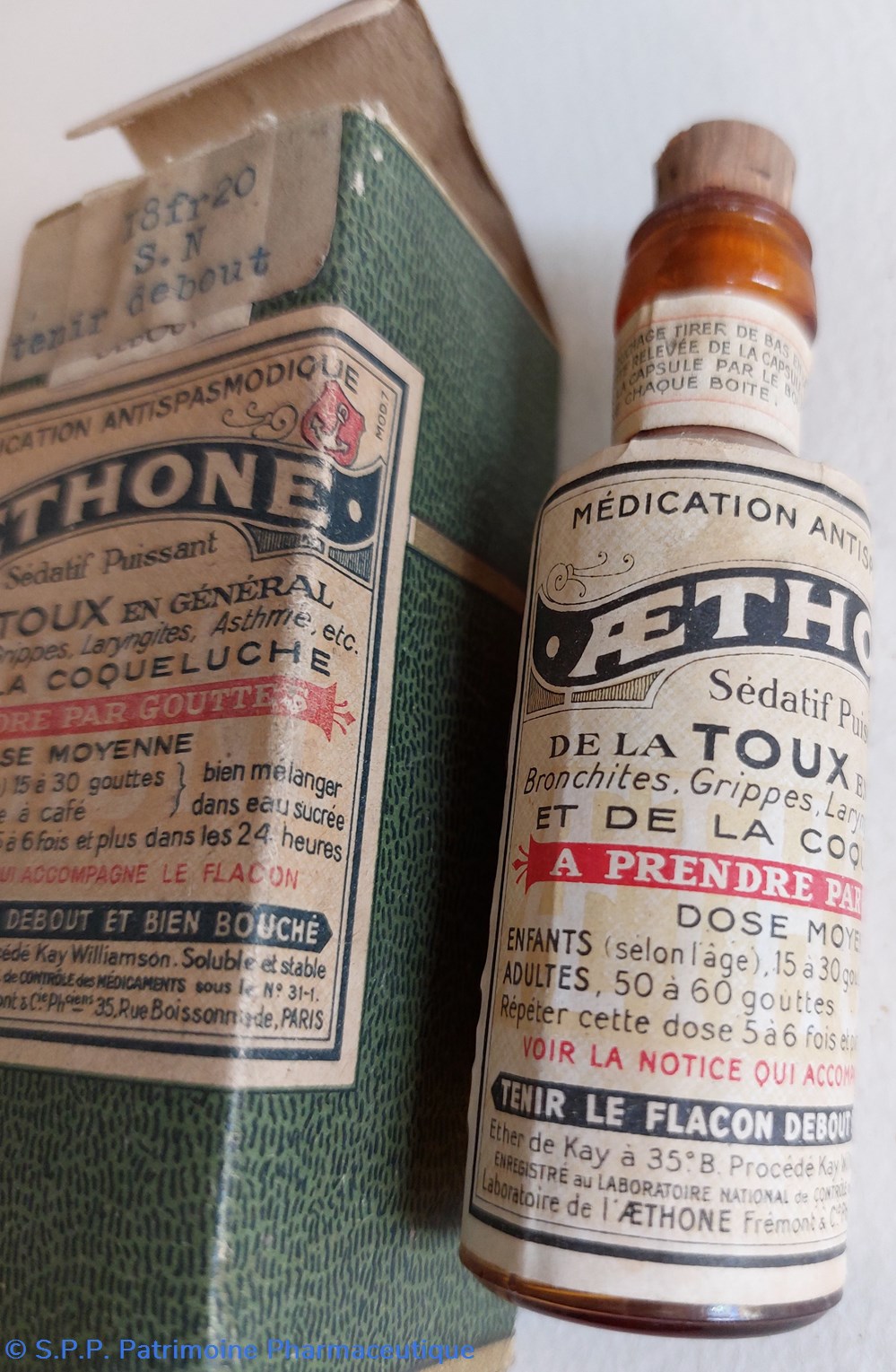 Médication antispasmodique - sédatif puissant à prendre par gouttes à base d'ether de Kay