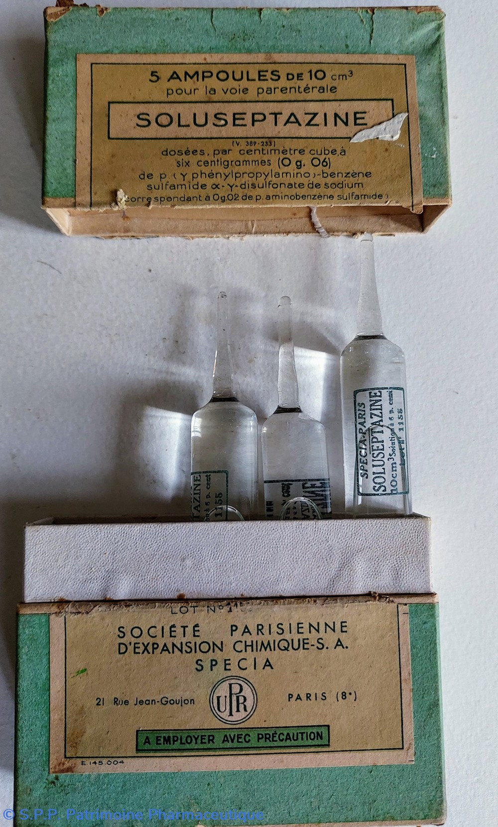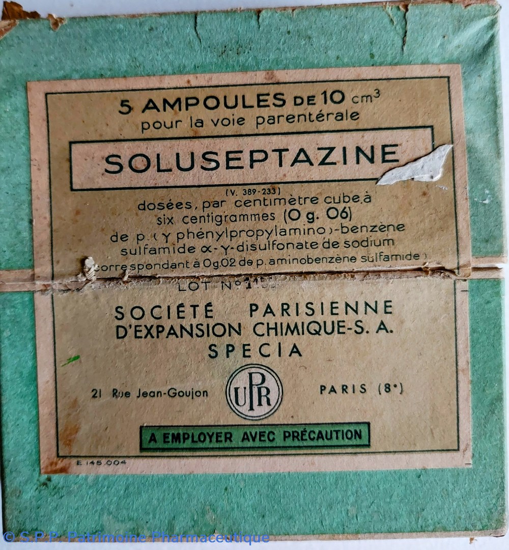 Boîte de 5 ampoules de 10 cm3 ( 3 restantes) DE SOLUSEPTAZINE pour voie parentérale