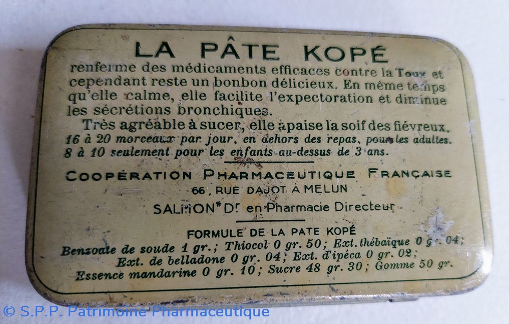 Pâte KOPÉ " bonbon délicieux à sucer" pour affections des bronches Toux et Rhumes. Pectorale adoucissante rafraîchissante. (5,10 T. A. Comprise)