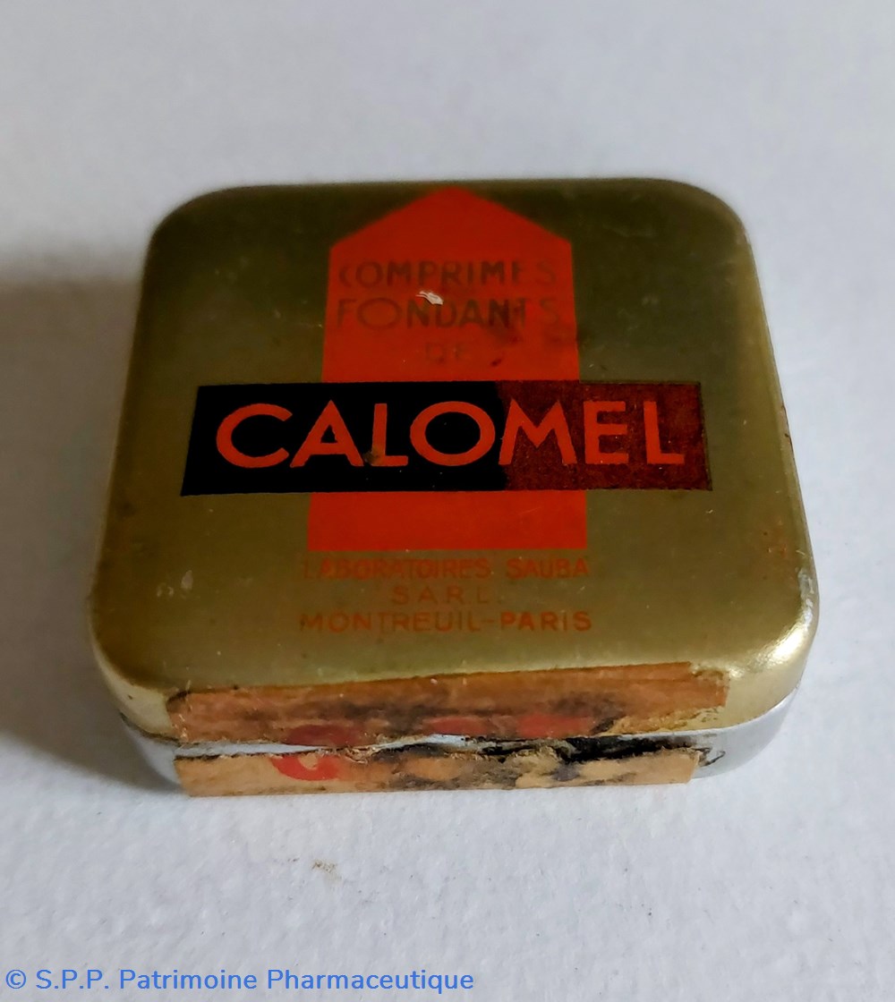 Boîte de format carré 4*4*1,5 cm de 20 comprimés fondants de CALOMEL à 0,05 g.