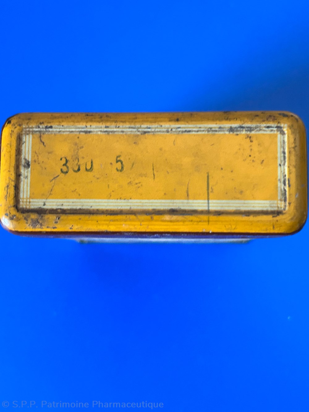 Boîte métallique vide de forme ovale hauteur 6 cm base 4,5* 2 cm