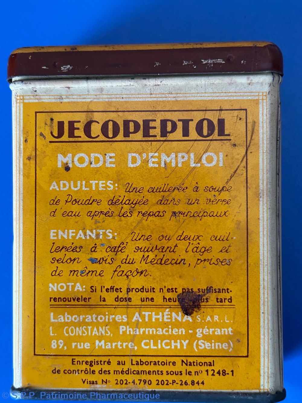 Laboratoires Athéna L. Constans pharmacien-gérant 89 rue Martre Clichy.