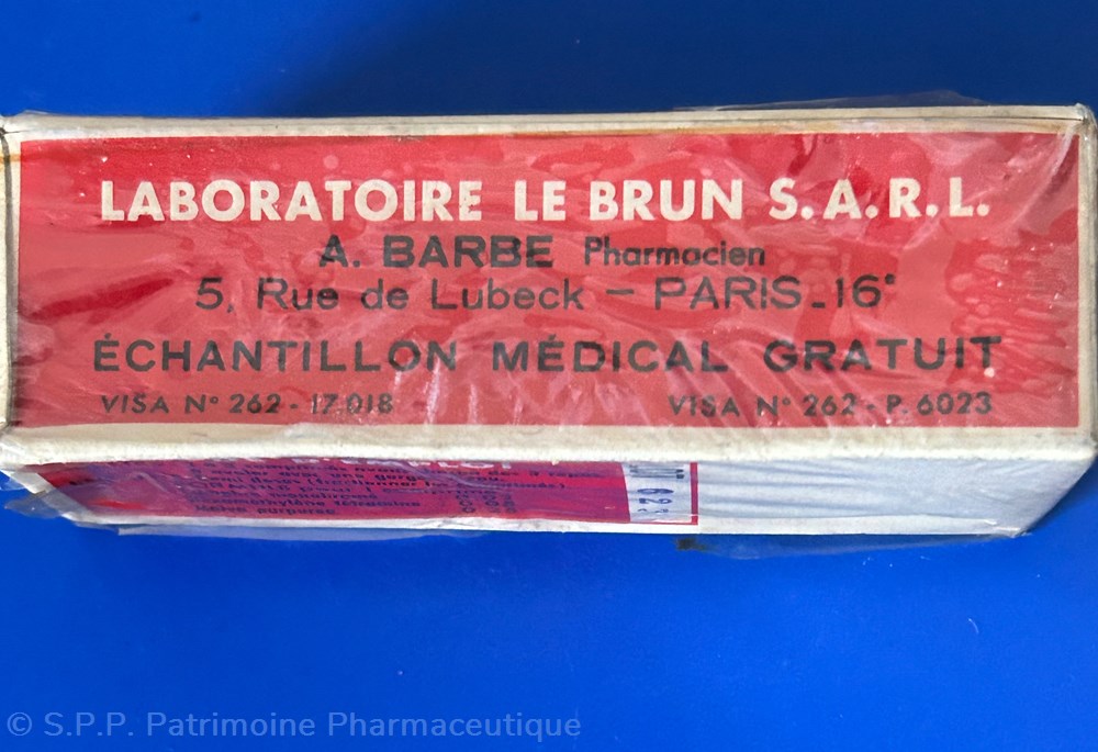 Laboratoires LE BRUN. A. Barbe Pharmacien 5 rue de Lubeck Paris16ème.