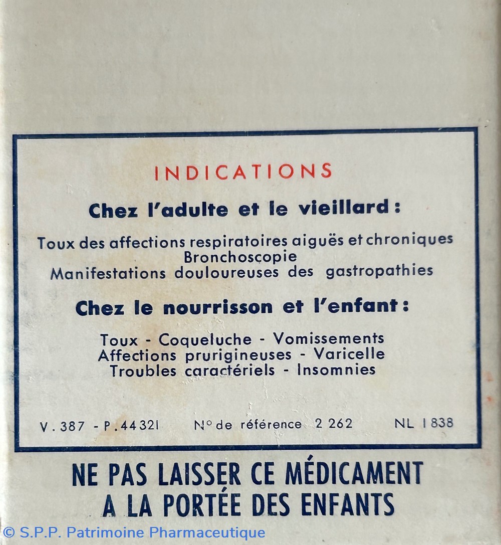 Sirop indiqué contre les affections respiratoires chez l'adulte et chez le nourrisson et l'enfant contre la toux, la coqueluche, et les insomnies.