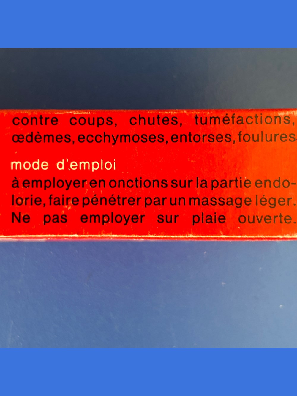 Pommade résolutive contenant de l'Arnica Montana, du sous-acétate de plomb et de l'extrait fluide de tamus communis.