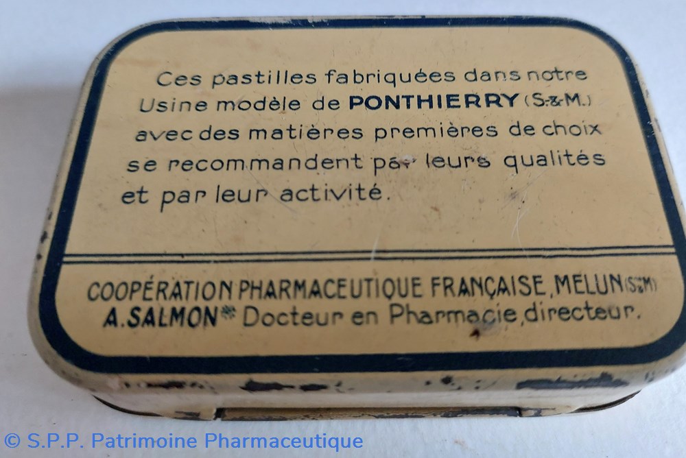 Pastilles pectorales contre la toux. Formule illisible dur le devant de la boîte.