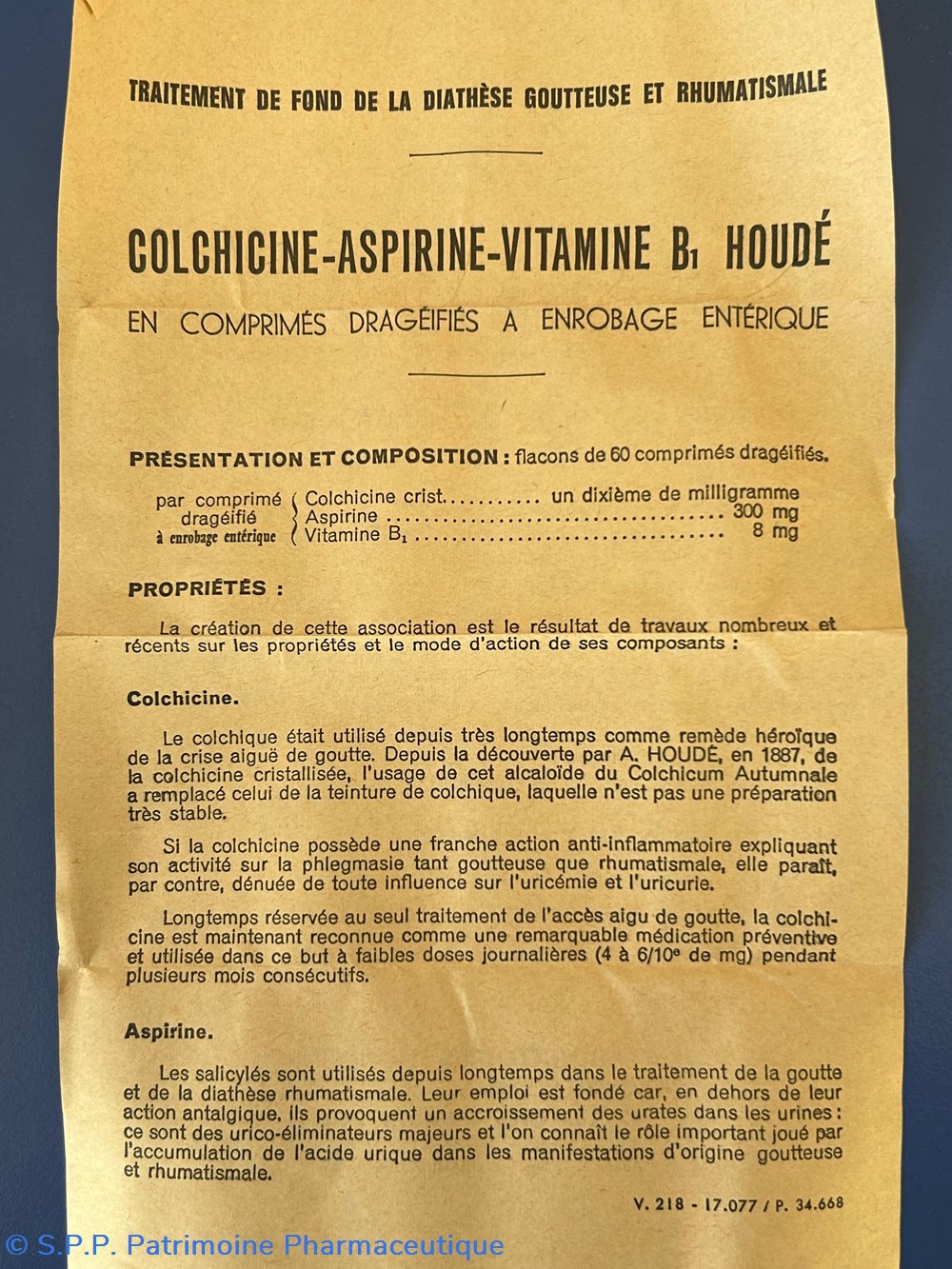 COLCHICINE-ASPIRINE-VITAMINE B1 HOUDE
