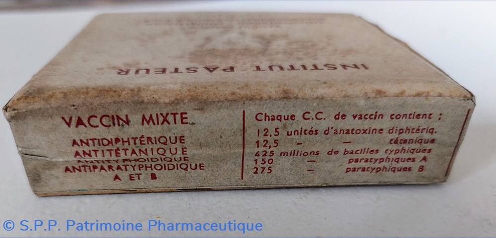 Boîte carton scellée ( 9* 7,5 cm) contenant du vaccin associé antidiphterique antitétanique antityphoparattyphojdique.