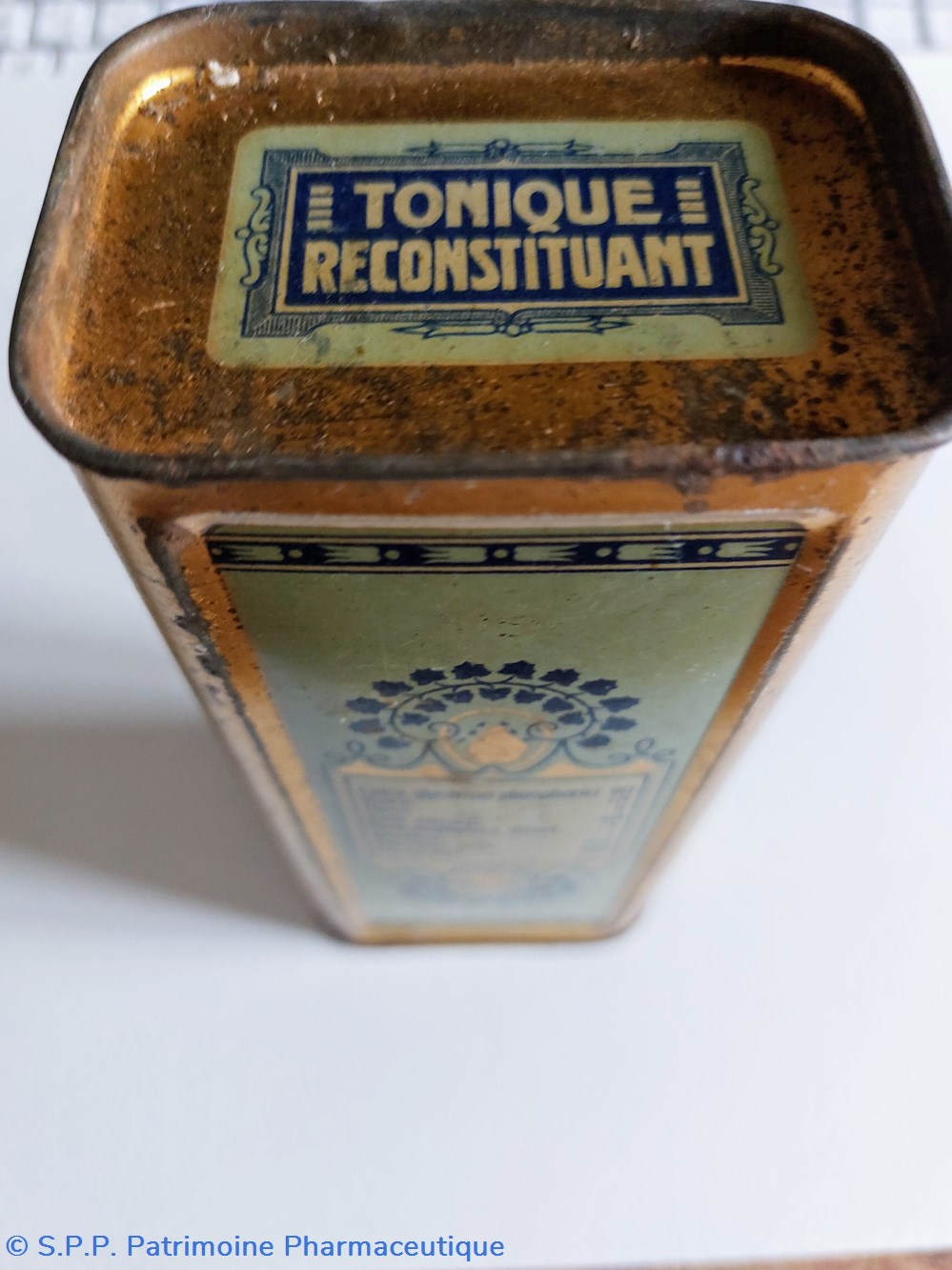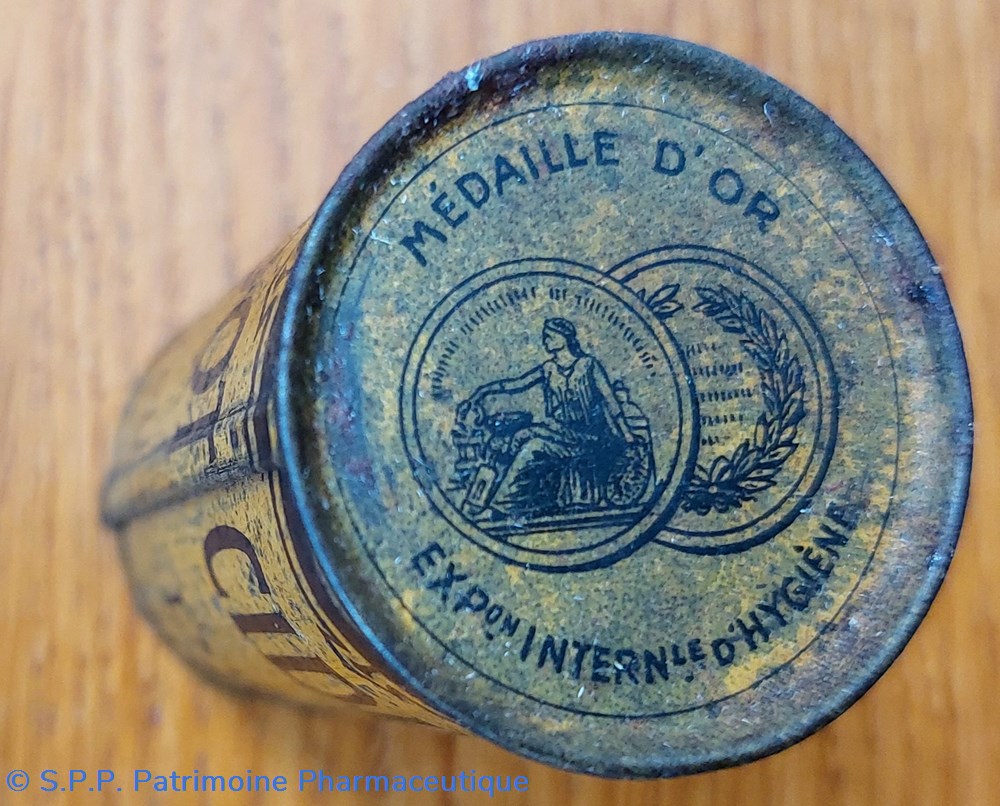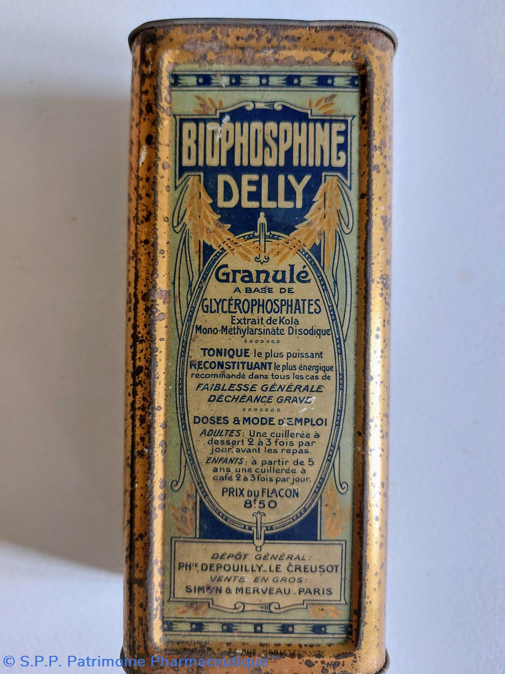 Boîte métallique vide 15,5 cm/ base 7*5 cm ayant contenu des granulés BIOPHOSPHINE DELLY à base de glycérophosphates.