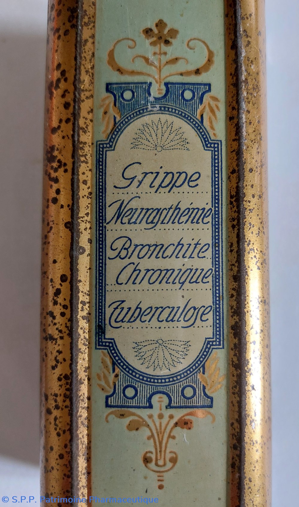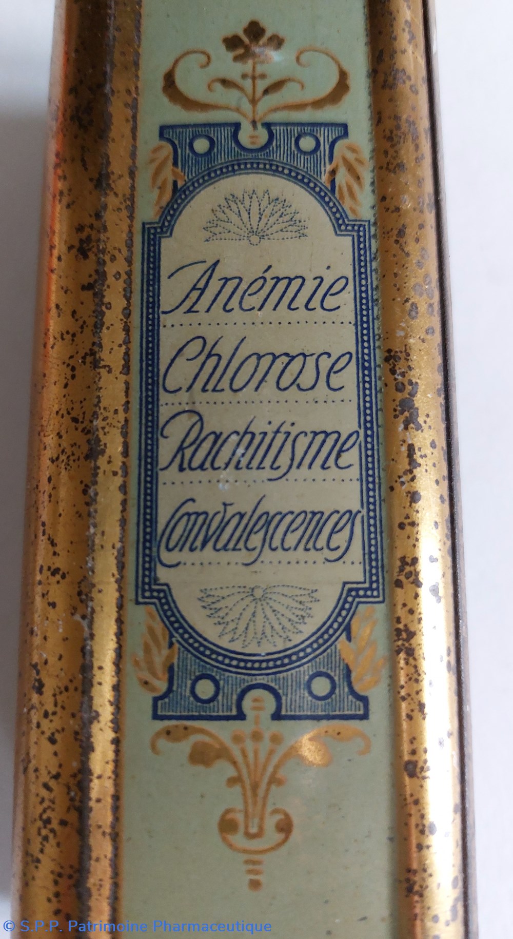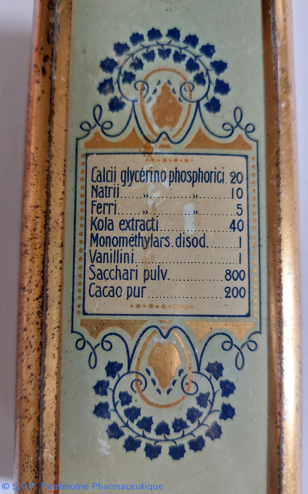 Boîte métallique vide 15,5 cm/ base 7*5 cm ayant contenu des granulés BIOPHOSPHINE DELLY à base de glycérophosphates.