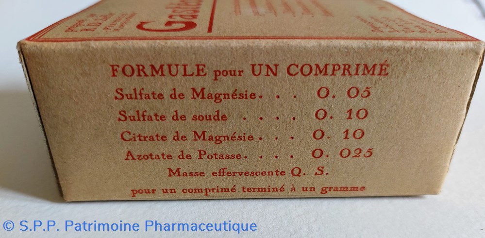 Emballage carton 9*6,5* 3,5 cm contenant un flacon en verre intact détenant des comprimés blancs solubles dans l'eau.