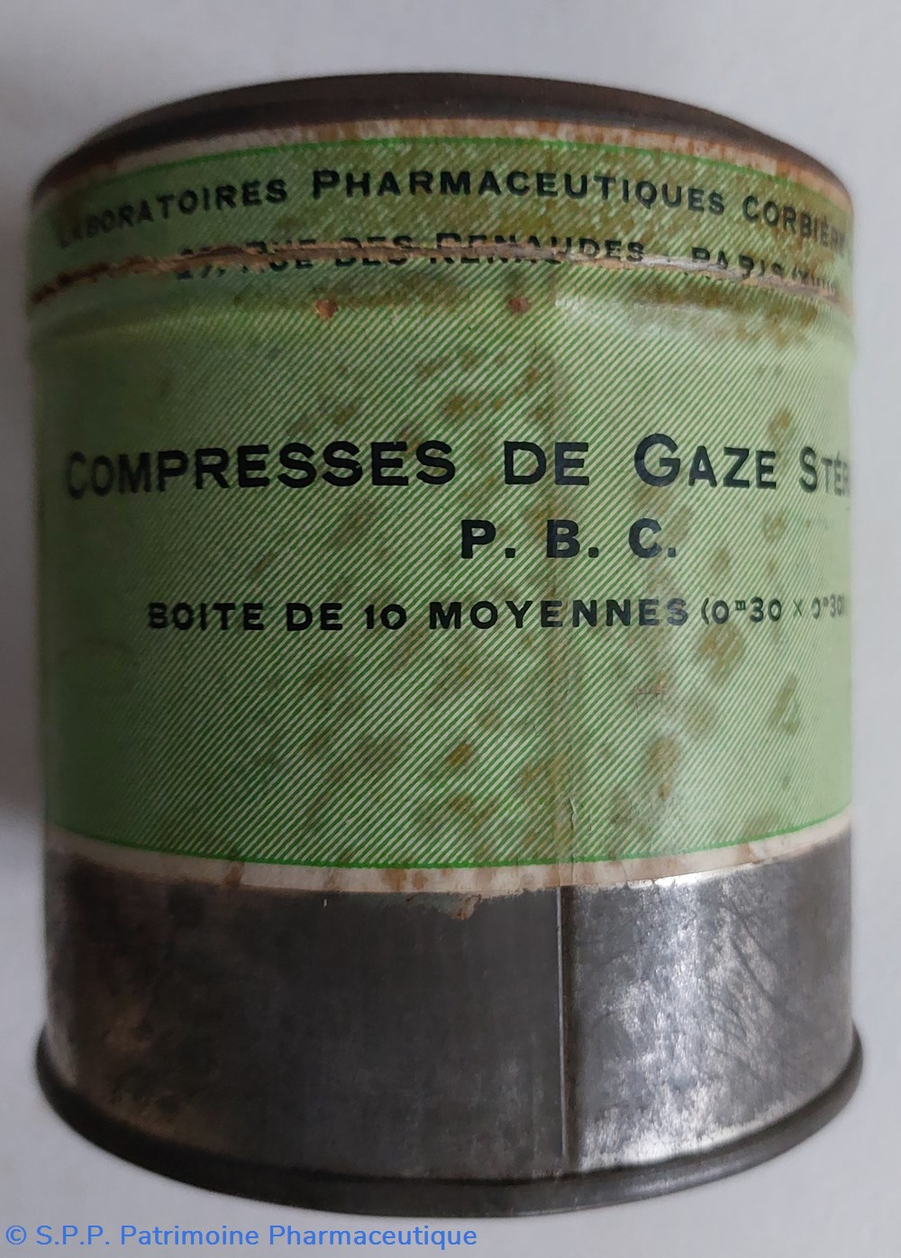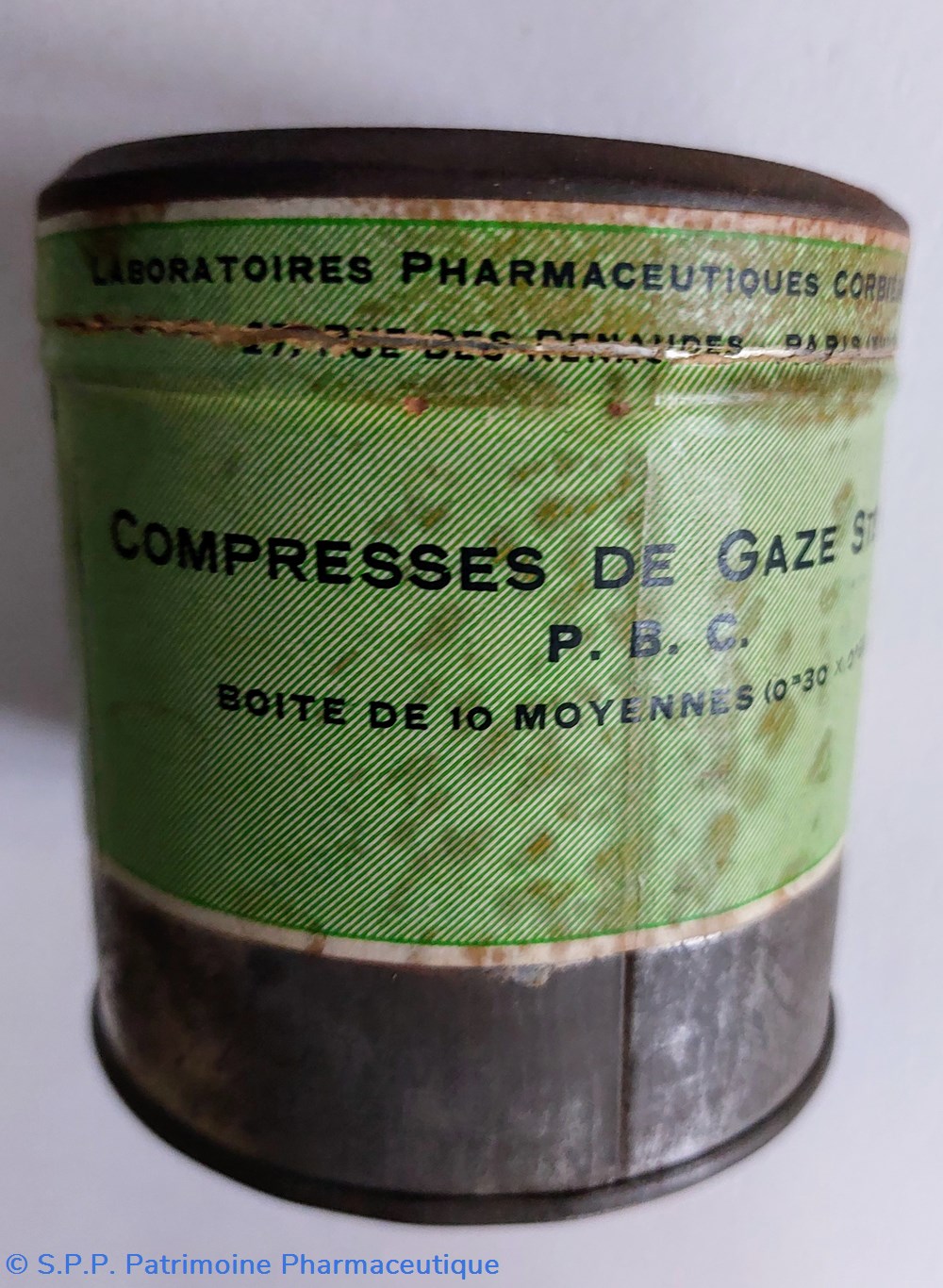 Boite métallique contenant des Compresses de gaze stérile PBC