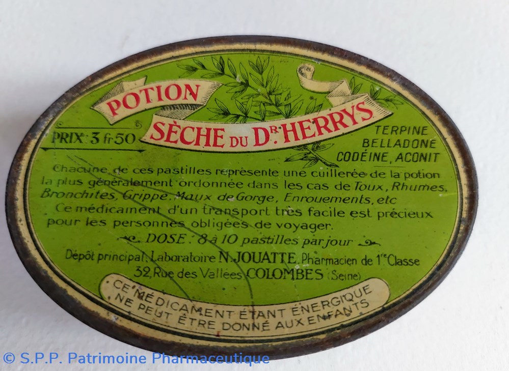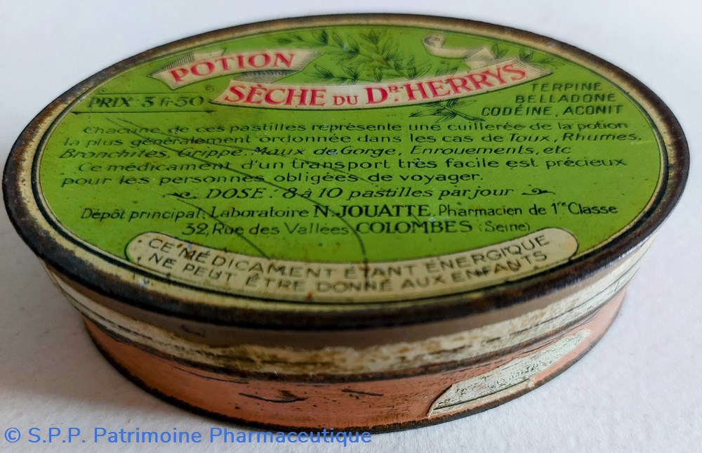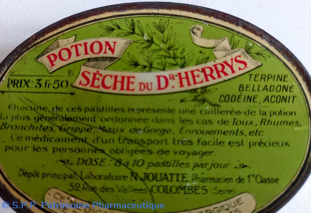 Boite métal ovale vide 9 * 6,5 cm contenant la Potion Sèche du Dr HERRYS sous forme de Pastilles