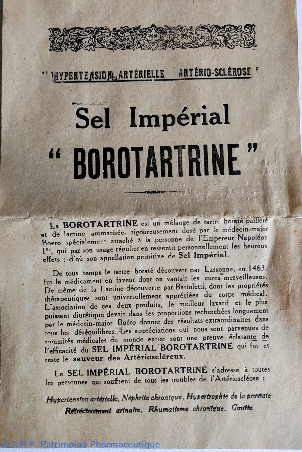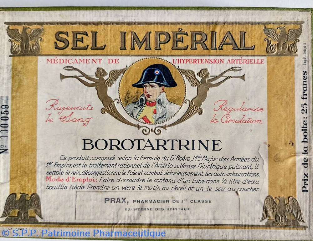 Medicament de l'hypertension artérielle et arterio- sclérose composé par le médecin major attaché à la personne de l'empereur Napoléon.