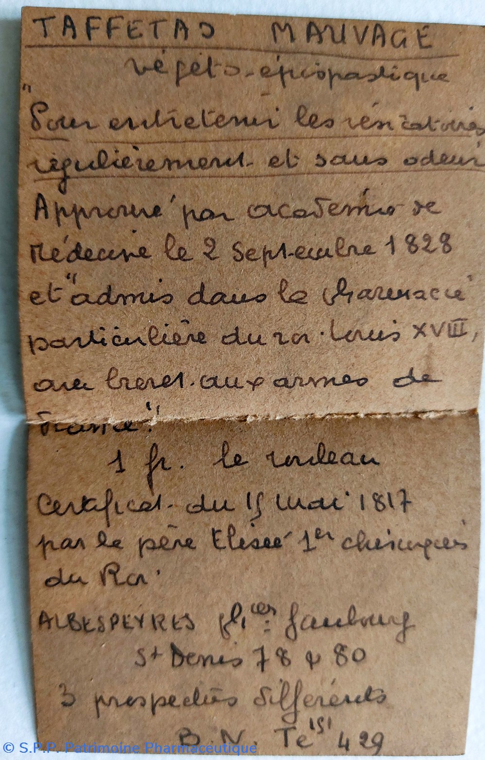 Pour entretenir les vésicatoires régulièrement et sans odeur. Approuvé par l'académie de Médecine le 2 septembre 1828