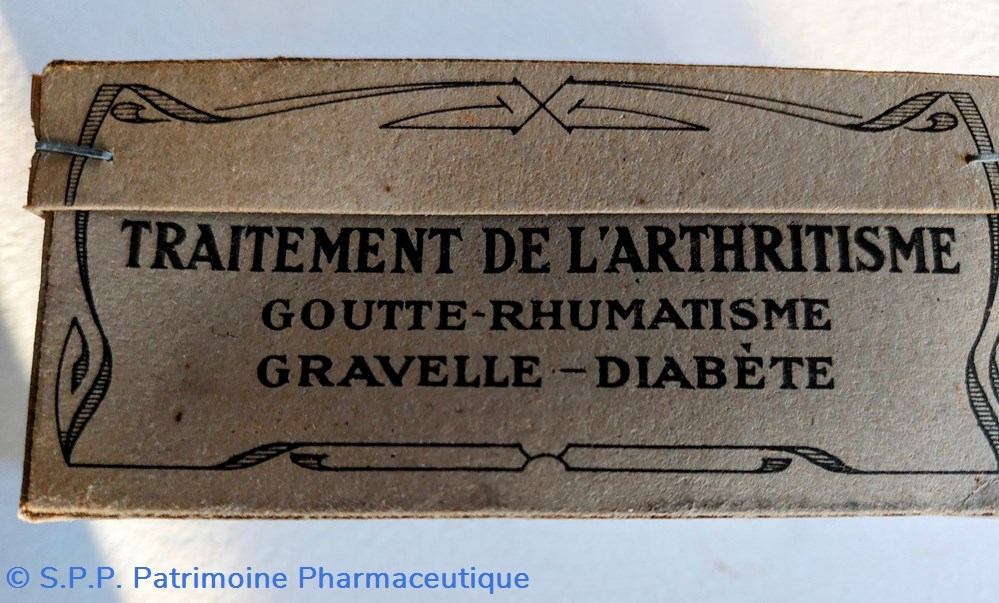 Traitement de l'Arthritisme goutte rhumatisme gravelle diabète. Traitement des maladies des reins du foie de l'estomac de la vessie et de la peau.