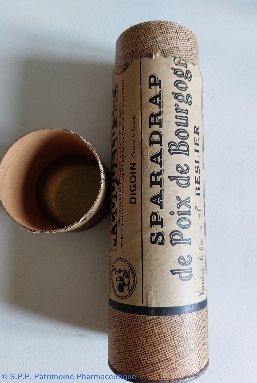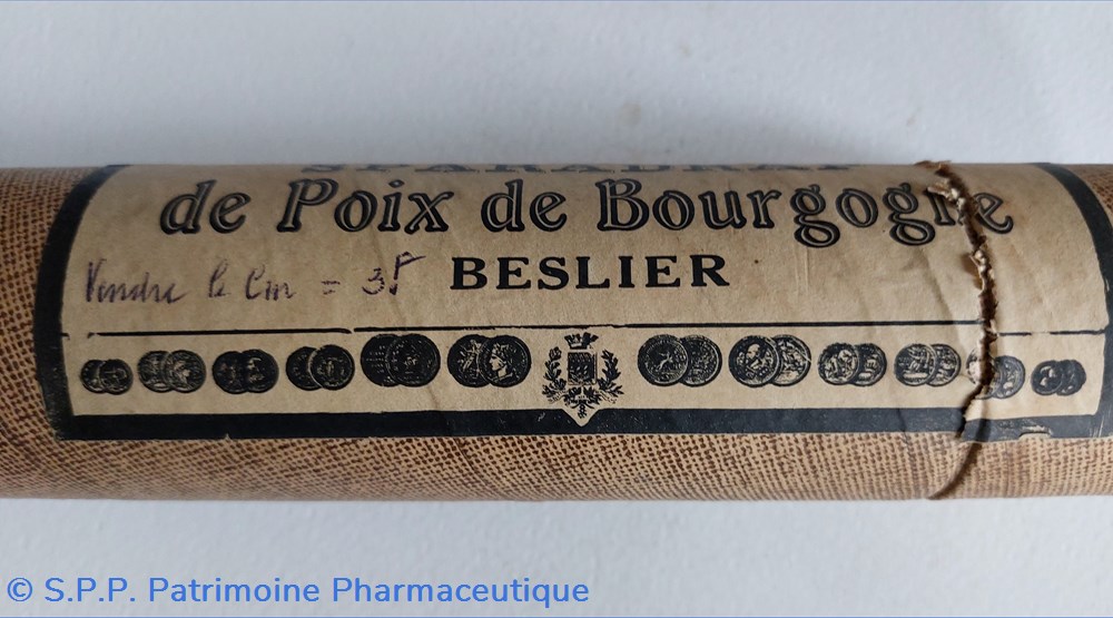 Cylindre vide en carton long 21, 5 Diamètre base 5,5 cm ayant contenu du SPARADRAP de poix de Bourgogne BESLIER.