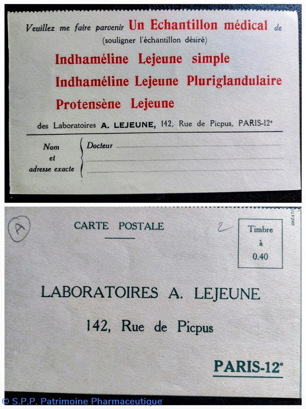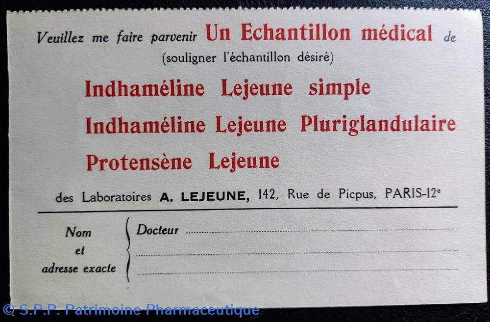 Bon pour un échantillon médical de INDHAMELINE Lejeune simple ou Pluriglandulaire et Protensène Lejeune