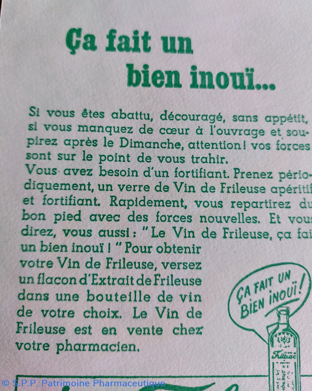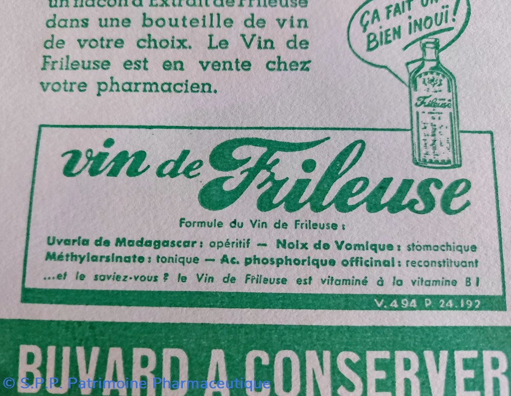 Le verso du buvard invite à "prendre périodiquement un verre de vin de FRILEUSE... Ça fait un bien inouï "