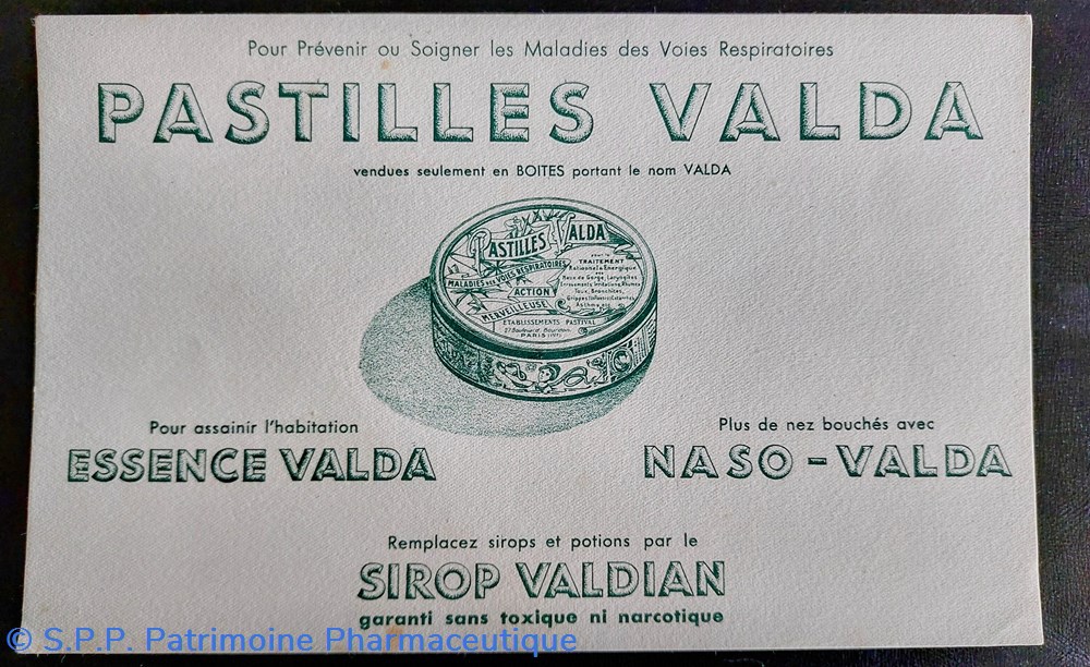 Buvard distribué par PASTILLES VALDA pour prévenir et soigner les maladies des voies respiratoires et..