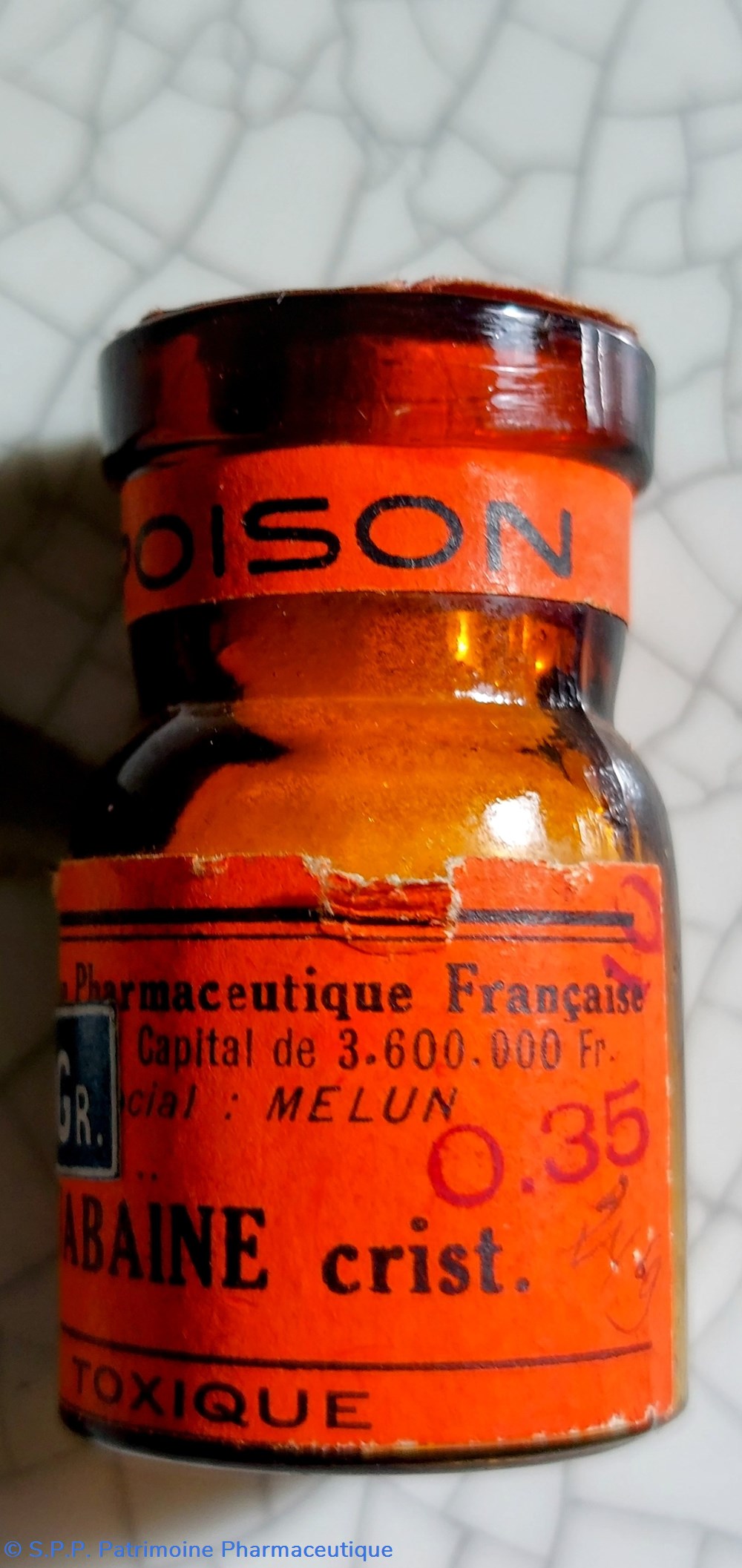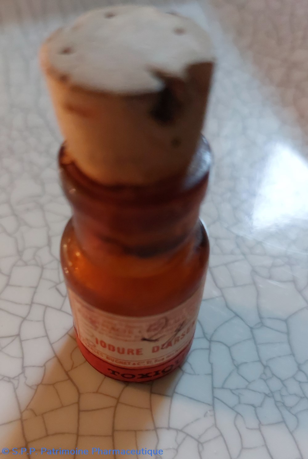 Petit flacon scellé en verre ambré contenant DE la poudre blanche